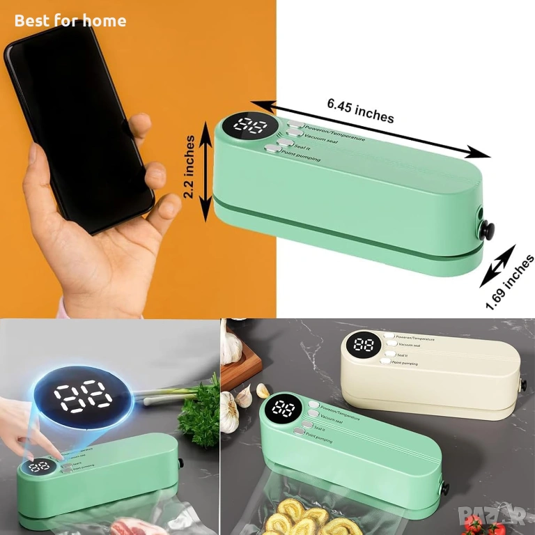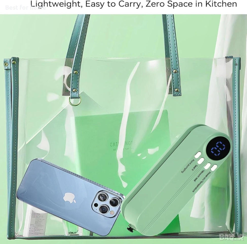 Запазете храната си свежа за по-дълго с този компактен и мощен 3-в-1 ръчен вакуумиращ уред. С размер на мобилен телефон, това устройство е перфектният помощник както за кухнята, така и за пътувания, къмпинг или пикници. Уредът предлага три режима на работа, които покриват всички нужди от съхранение на суха и влажна храна до запечатване на отворени пакети със снакс.