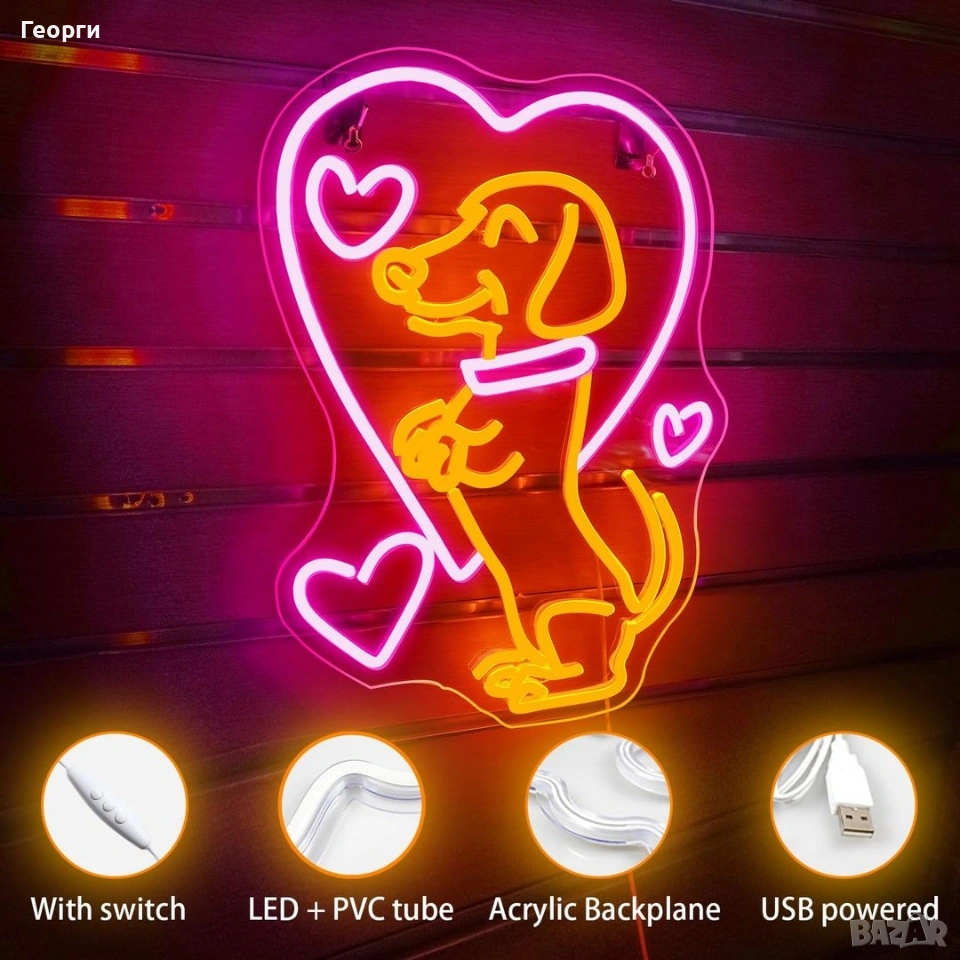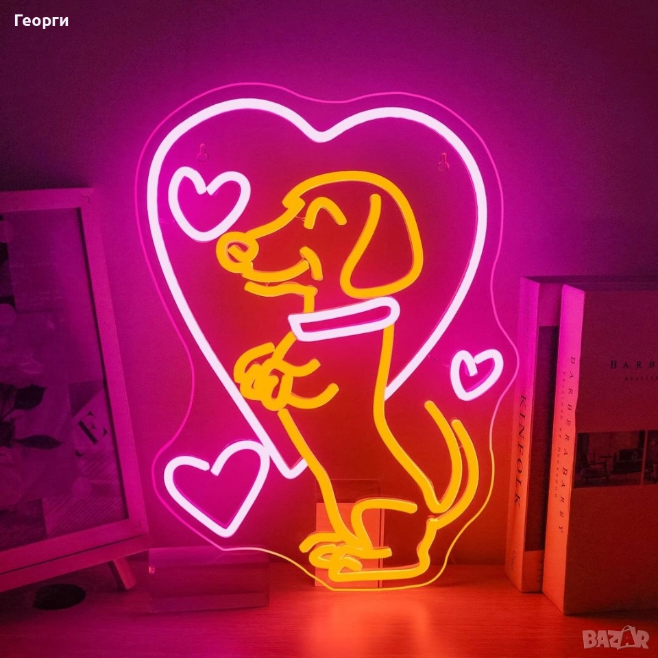 Неонова табела с куче, LED светлина, сладко кученце, стенен декор за любители на кучета - Love Design