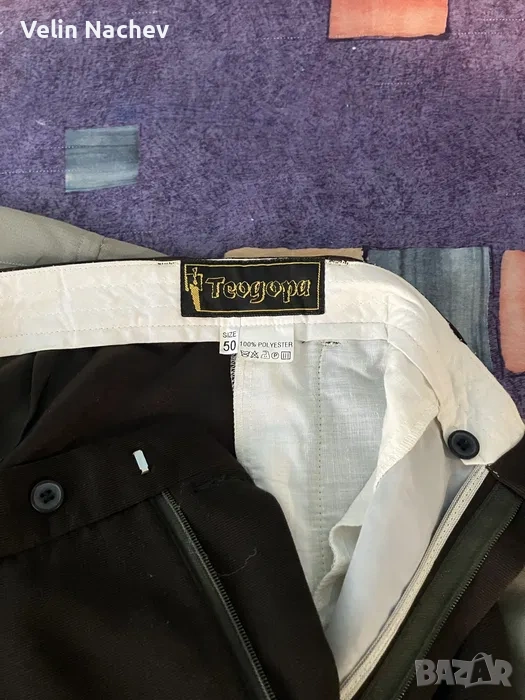 * Панталон: От марката Teogopa, размер 50. Цвят: тъмен, черен или тъмнокафяв. Материята е 100% полиестер, което го прави лесен за поддръжка.