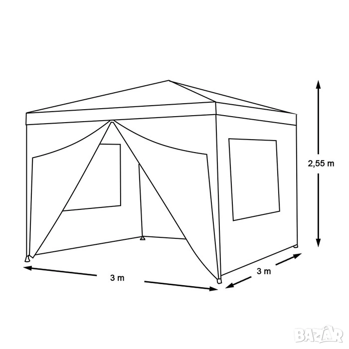 Създайте перфектното място за празненства на открито с тази практична и лека парти шатра. Подходяща е за градински партита, барбекюта, семейни събирания и различни частни събития. Осигурява сянка и защита от лек дъжд, като създава комфортна зона за гостите ви у дома или в двора.