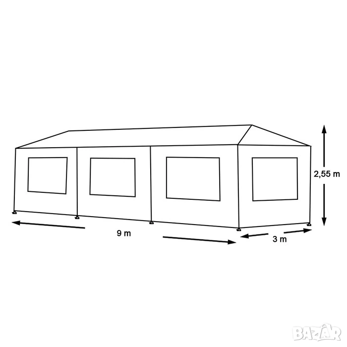 Градинска парти шатра – бяла, полиетилен, 3 размера (3x3 м / 3x6 м / 3x9 м)