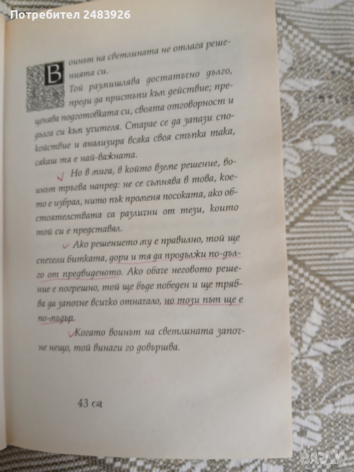 В текста има налични леки, не системни V отметки и пожълтяване в горната част на бялото поле