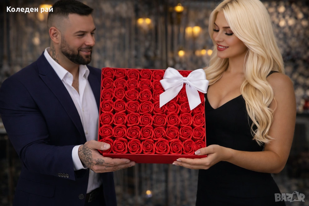 Искаш да подариш нещо елегантно, което да не приключи в кошчето след седмица. Търсиш подарък, който да ухае добре, да изглежда луксозно и да показва, че имаш вкус. Не просто цветя, а жест на внимание, който гали сетивата. Искаш да подариш нещо елегантно, което да не приключи в кошчето след седмица. Търсиш подарък, който да ухае добре, да изглежда луксозно и да показва, че имаш вкус. Изящество, аромат и стил в готов подарък, който не увяхва Ефектът на мащаба: 49 прецизно подредени рози създават плътен, кадифен килим от красота. Този подарък доминира пространството и приковава вниманието на всеки, който влезе в стаята. Вечна свежест: Тези рози запазват наситения си цвят и перфектна форма завинаги. Ти подаряваш букет, който няма да бъде изхвърлен след седмица, а ще остане като постоянен символ на твоето внимание. Модерна елегантност: Квадратната форма на кутията е символ на съвременния стил. Тя е изчистена, луксозна и придава на подаръка ти архитектурна завършеност. Готов за поднасяне: Ние знаем, че твоята цел е ефектът. Затова кутията пристига в перфектен вид, с внимание към всеки детайл и панделка. Ти просто я подаряваш – ние свършихме работата по „Wow“ ефекта.