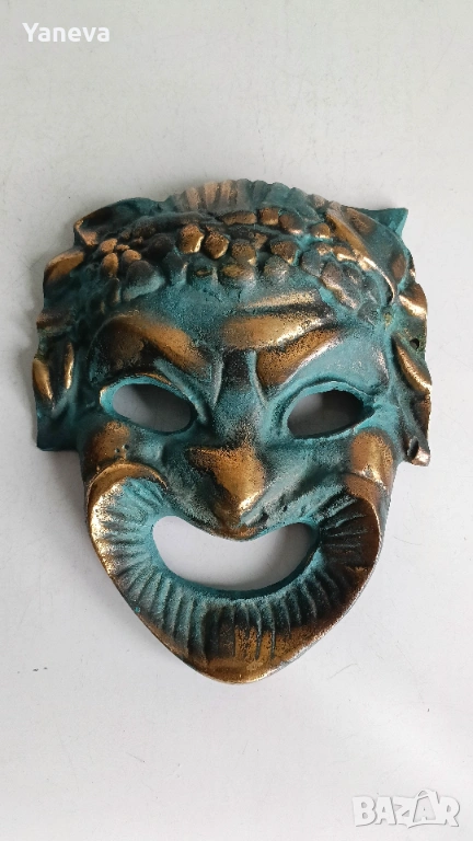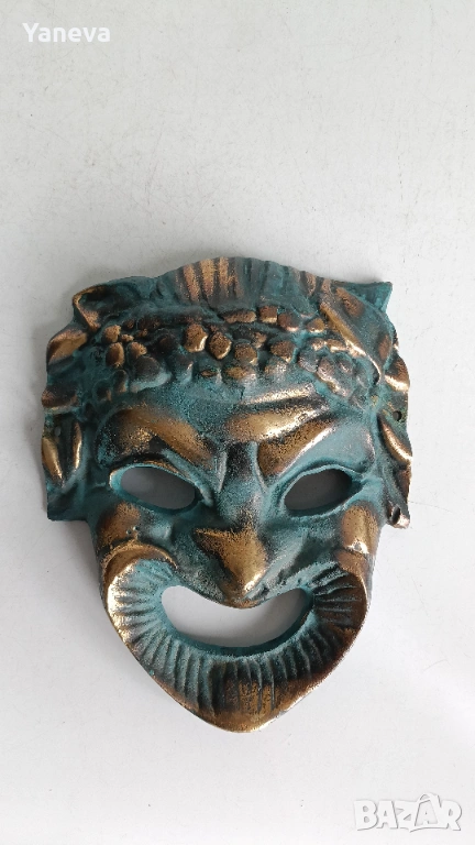 Бронзова масивна маска на сатир с венец от грозде → Обява 53276361