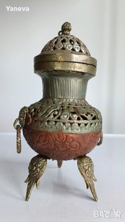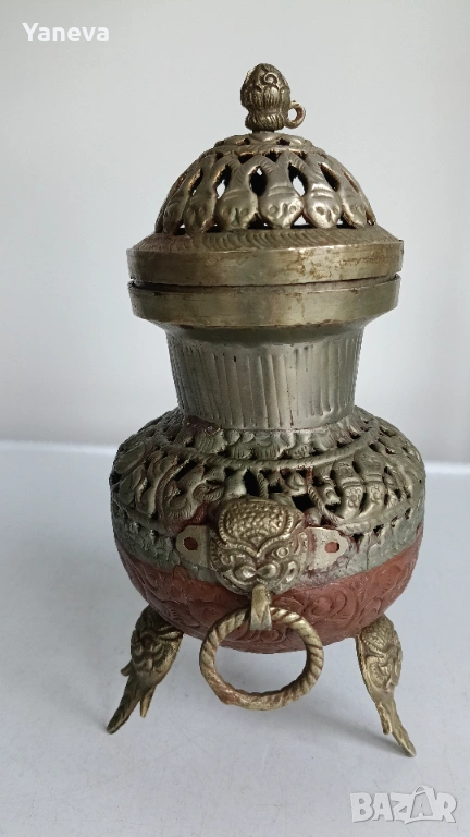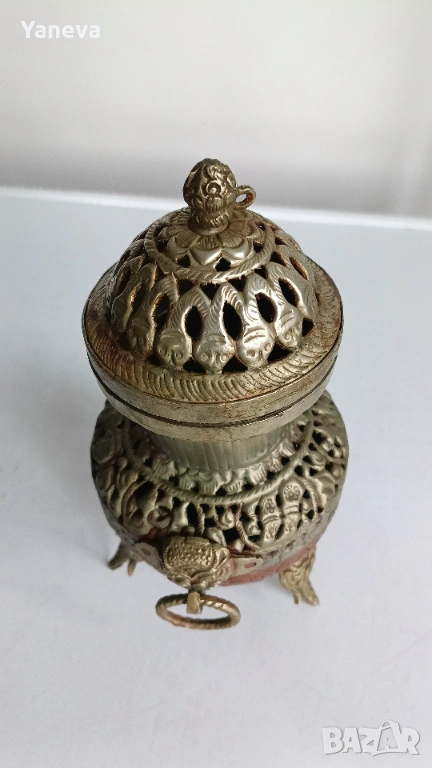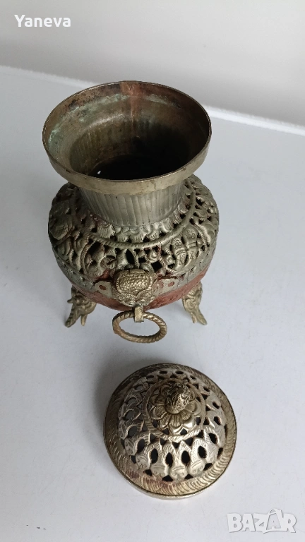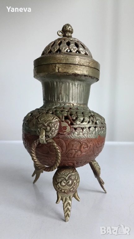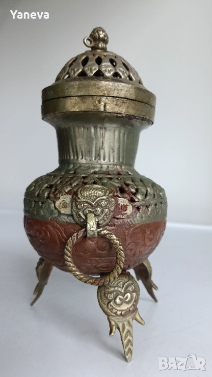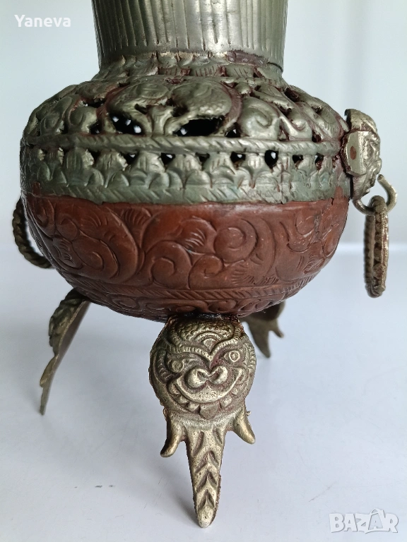 Тибетска, медна , старинна кадилница ,съд за прекадяване на тамян. → Обява 53276414