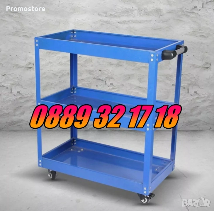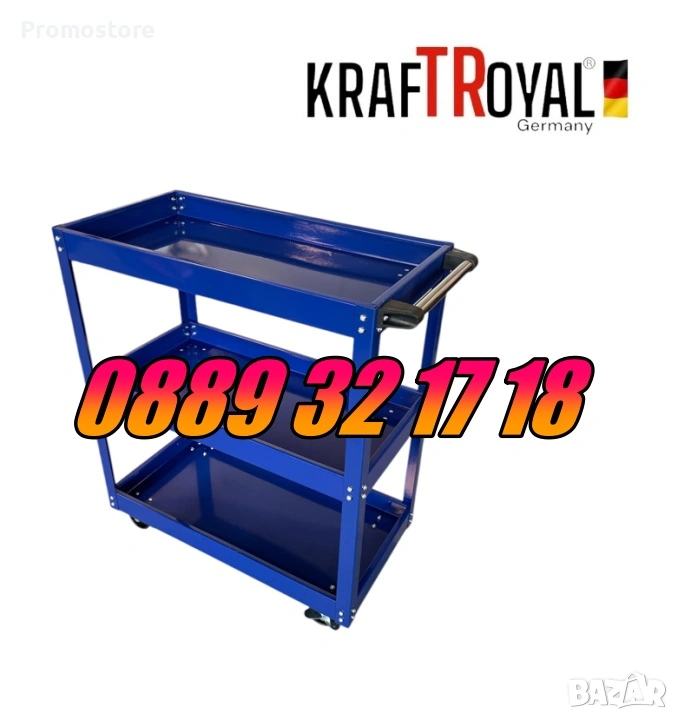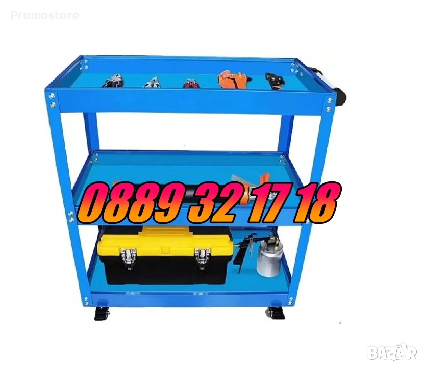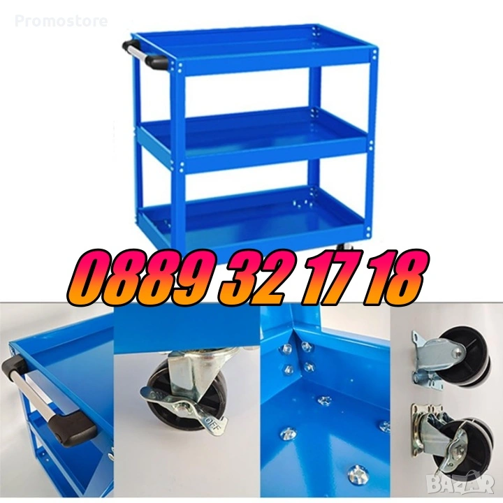 Подвижна и удобна сервизна количка с 3 рафта за съхранение и транспорт на всякакви инструменти. Изработена е от висококачествени материали, здрава и лесна за придвижване благодарение на 4 колела и удобна дръжка. Много подходяща за сервизи и работилници.