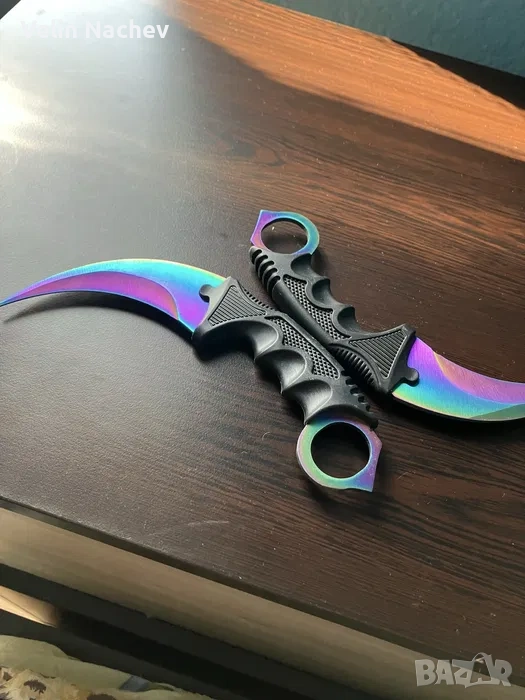 * Комплектът включва: Един тренировъчен карамбит в класически черен цвят и един с ефектна, преливаща "дъга" (rainbow) окраска.