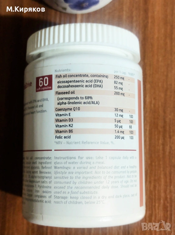 **Указания: Приемайте по 1 капсула дневно с чаша вода по време на хранене.