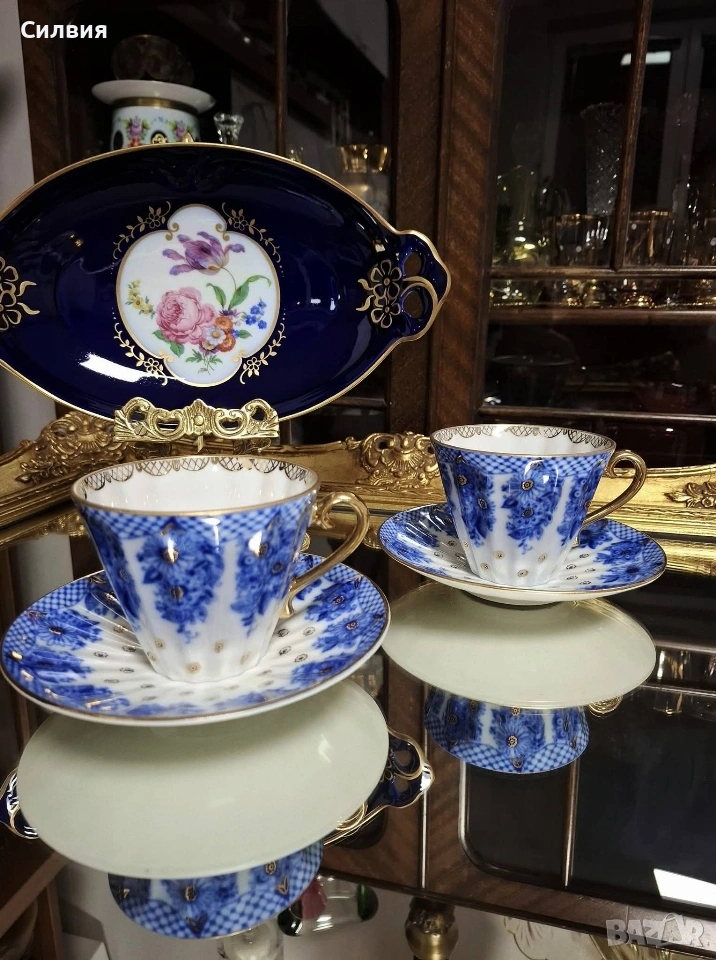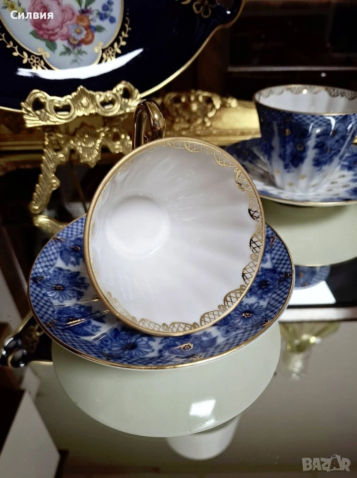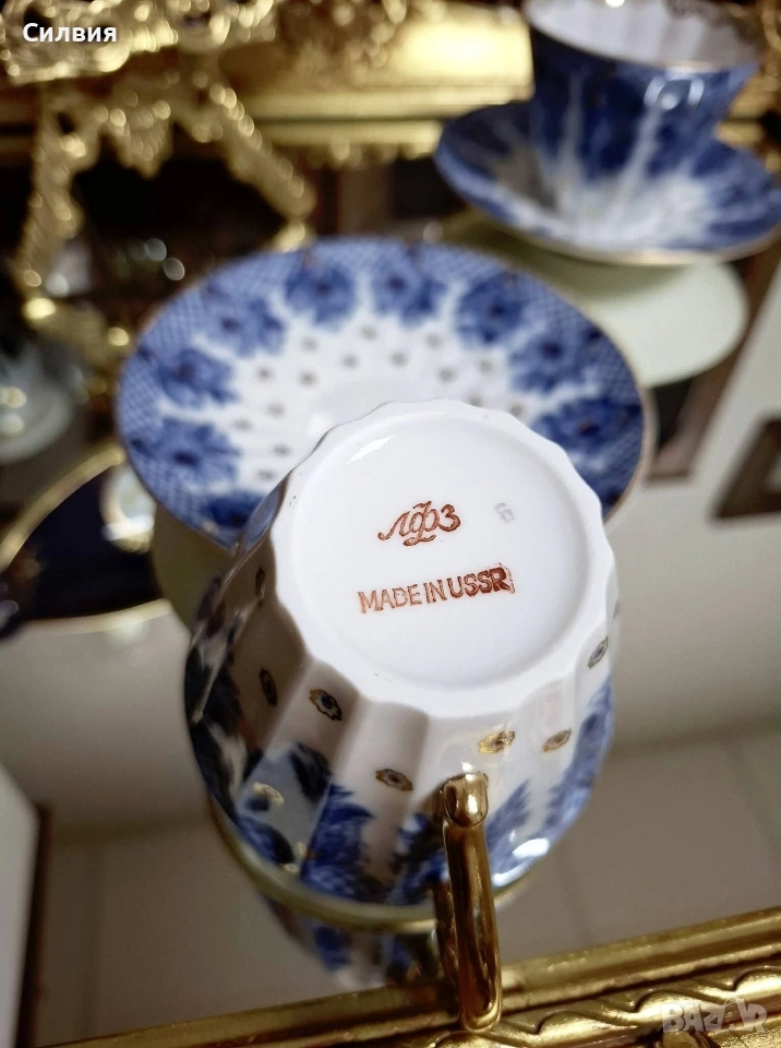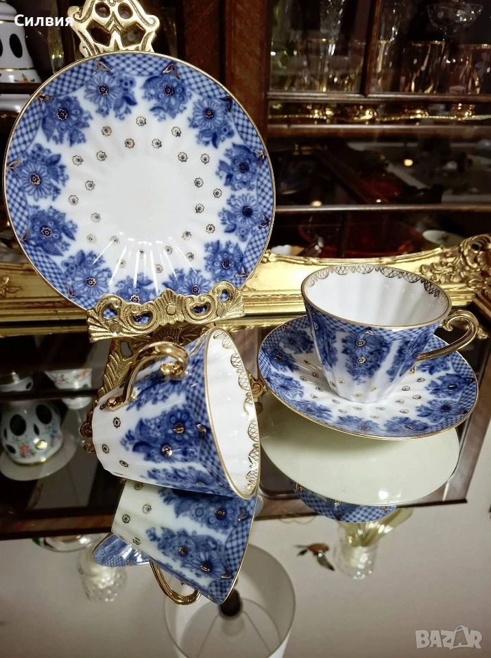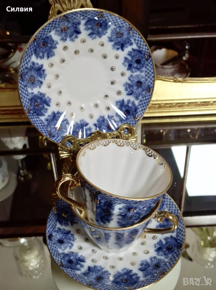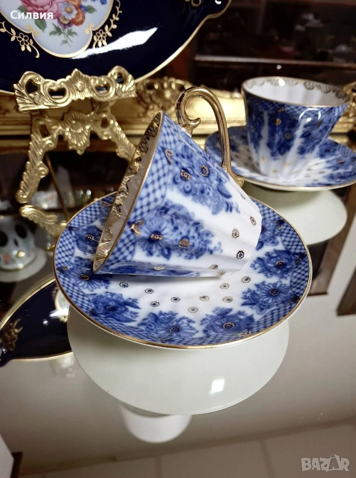 Две красавици от ЛФЗ Порцеланова дипломация в синьо и златно Търсите ли начин да накарате съседите да мислят, че криете изгубеното съкровище на Романови в кухненския си шкаф? Тези две руски чаши са вашият официален билет за висшето общество (или поне за един много по-стилен следобеден чай). 🖋️ Характеристики на „Аристократките“: Дизайн: Невероятно съчетание от кобалтово синьо, фини флорални мотиви и толкова много злато, че слънцето ще ви завиди. Дръжката: Ергономично проектирана да държи кутрето ви в перфектна 45-градусова позиция. Вместимост: 220 мл – идеалният обем, за да не изстине чаят ви, докато обсъждате световната класика. Чинийка: 14,7 см – достатъчно широка, за да побере егото на всеки домакин или няколко бутикови бонбона. ✨ Състояние: Без чипове, без забележки, само чист престиж. Обща цена 1️⃣1️⃣0️⃣€ 《215,14лв.》❥⊱╮💙☆♪ ░─❥⊱💙✿L░o░V░e░❥─❥⊱💙✿⊱╮💙☆♪ღ Придобивате ръчно декорирано автентично произведение на руското порцеланово изкуство – ценено от колекционери по целия свят. Проектирани в класически синьо-бял геометричен мотив с ръчно рисувани акценти от 22-каратово злато, този мотив е един от най-обичаните и колекционерски дизайни на Ломоносов. Характерната кръстосана кобалтовосиня мрежа на фона на брилянтно бял порцелан излъчва изтънченост и фина изработка.