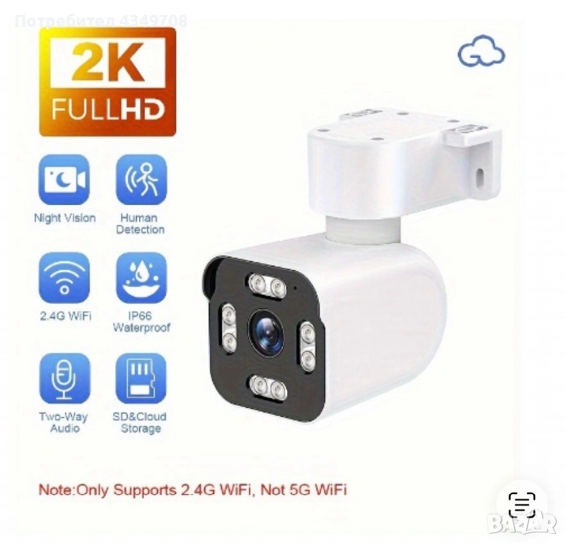 IP камера, Autodiag, 3МР, нощно виждане, двупосочно аудио, 360° въртене, аларма при движение, водоус → Обява 53276944