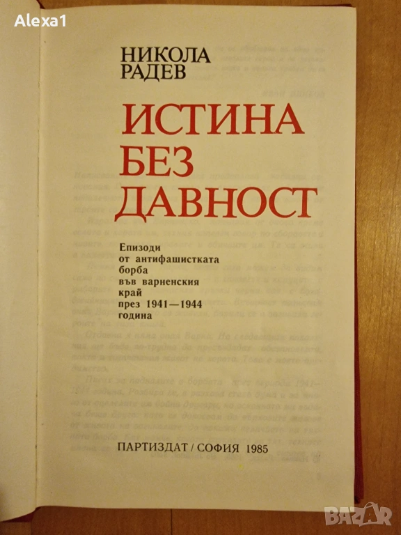 " Истина без давност " - Никола Радев, 1985г., 197 стр., твърди корици, отлично състояние, дефект - посвещение на първата страница.