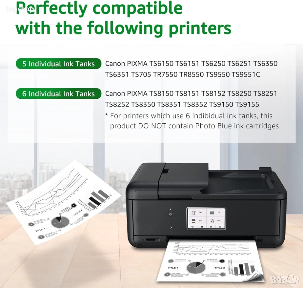 Съвместимост Работят с принтери Canon Pixma от сериите TR и TS, включително моделите TS6150, TS6151, TS8150, TS8151, TS9150, TR7550, TR8550 и други.
