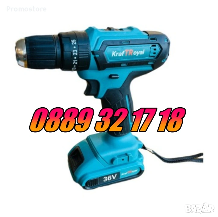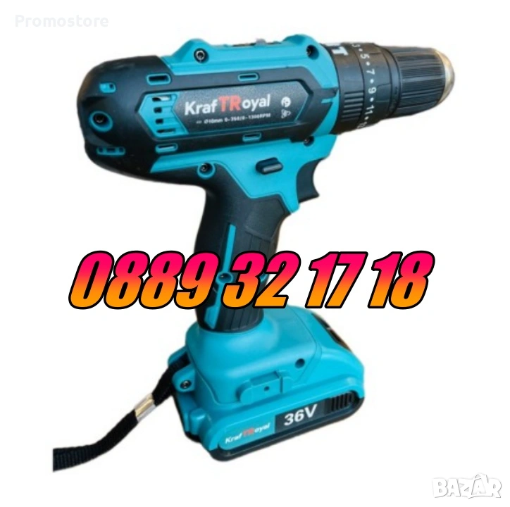 Акумулаторният винтоверт 36V e изключително качествен здрав и мощен инструмент. Комплектът съдържа зарядна станция, две 36 волтови литиево-йонни батерии и 25 части събрани в един удобен за съхранение в колата или гаража куфар.
