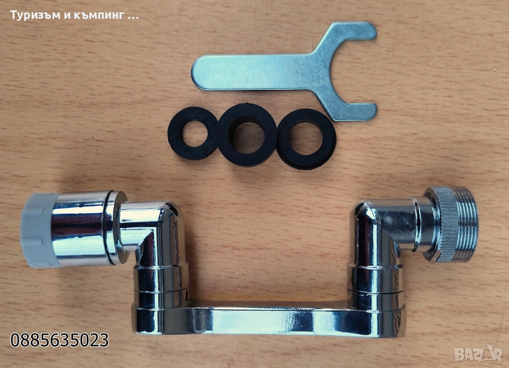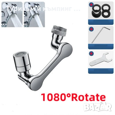 Този практичен удължител за кран улеснява миенето на съдове и почистването на мивката, като същевременно помага за намаляване на консумацията на вода. Благодарение на въртящото се на 360° рамо, водата може да бъде насочена във всяка посока, което улеснява достигането до всички части на мивката.