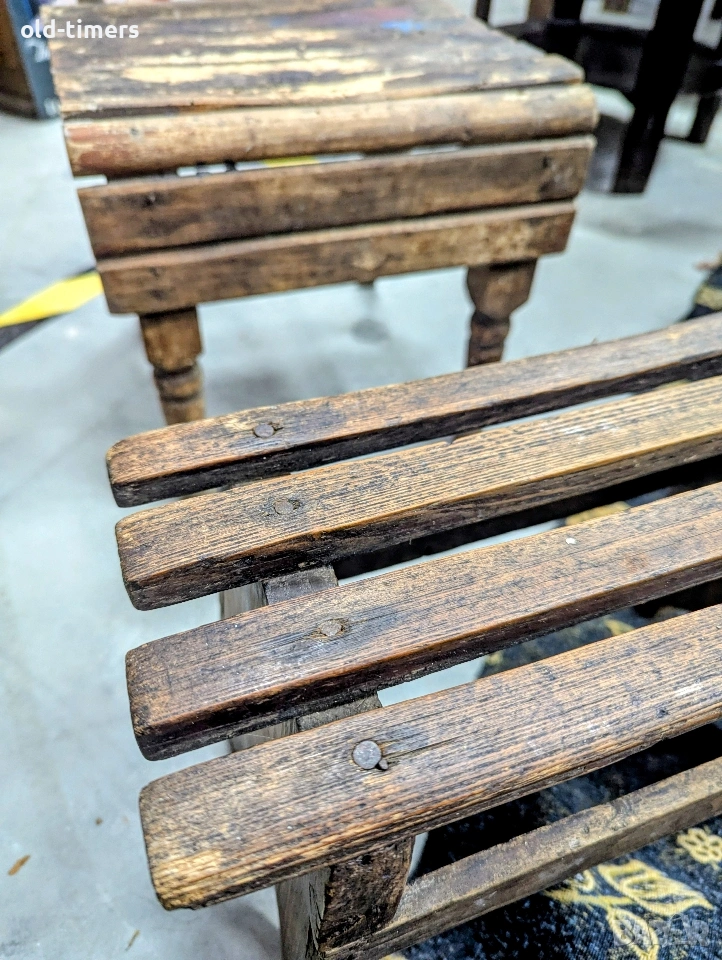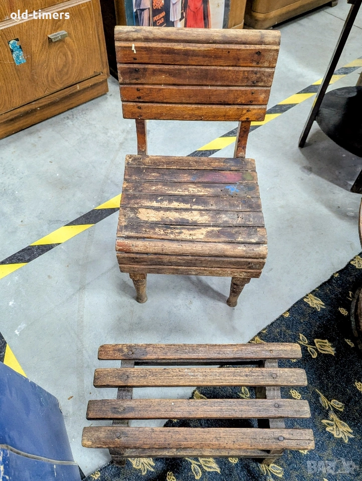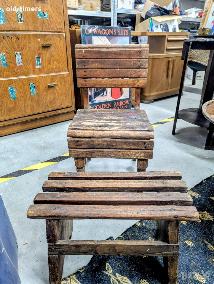 Винтидж комплект: Автентично малко столче и занаятчийска табуретка (1930-1950г.) → Обява 53277221