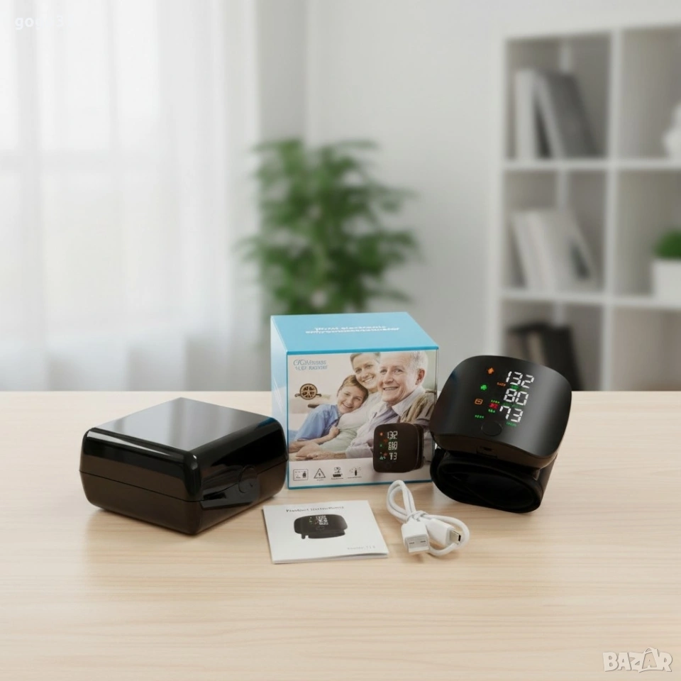 Преносим дигитален апарат за кръвно налягане за китка с LCD дисплей и памет Цена: 20 евро Тип: дигитален апарат за кръвно налягане за китка; Метод на анализ: осцилометричен; Памет: 2 × 120 групи; Диапазон на пулса: 40 – 199 удара/минута; Диапазон на налягането: 0 kPa – 37.33 kPa Размери на основната рамка: 120 × 108 × 50 мм; Диапазон на маншета: 23 – 33 см; Функции: часовник, откриване на неравномерен сърдечен ритъм (IHB), средна стойност от последните 3 измервания, класификация на кръвното налягане C30; Дисплей: LCD; Цветен фон: 2/3; Предназначение: домашна употреба и пътуване.
