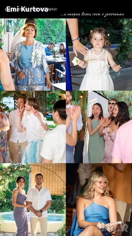 *Втори фотограф за заснемане на повече гледни точки и улавяне на всеки детайл при по-мащабни сватби