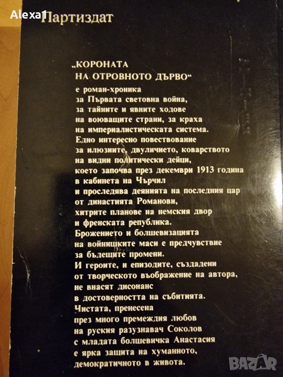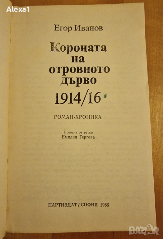 " Короната на отровното дърво " - Егор Иванов, 1985г., 509 стр., много добро състояние, меки корици, лек дефект на корицата и надпис от вътрешната страна на задната корица.