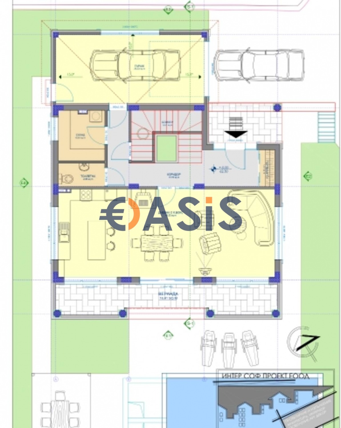 Обща площ: 281,85 кв. м.+ 540 кв. м. двор+басейн