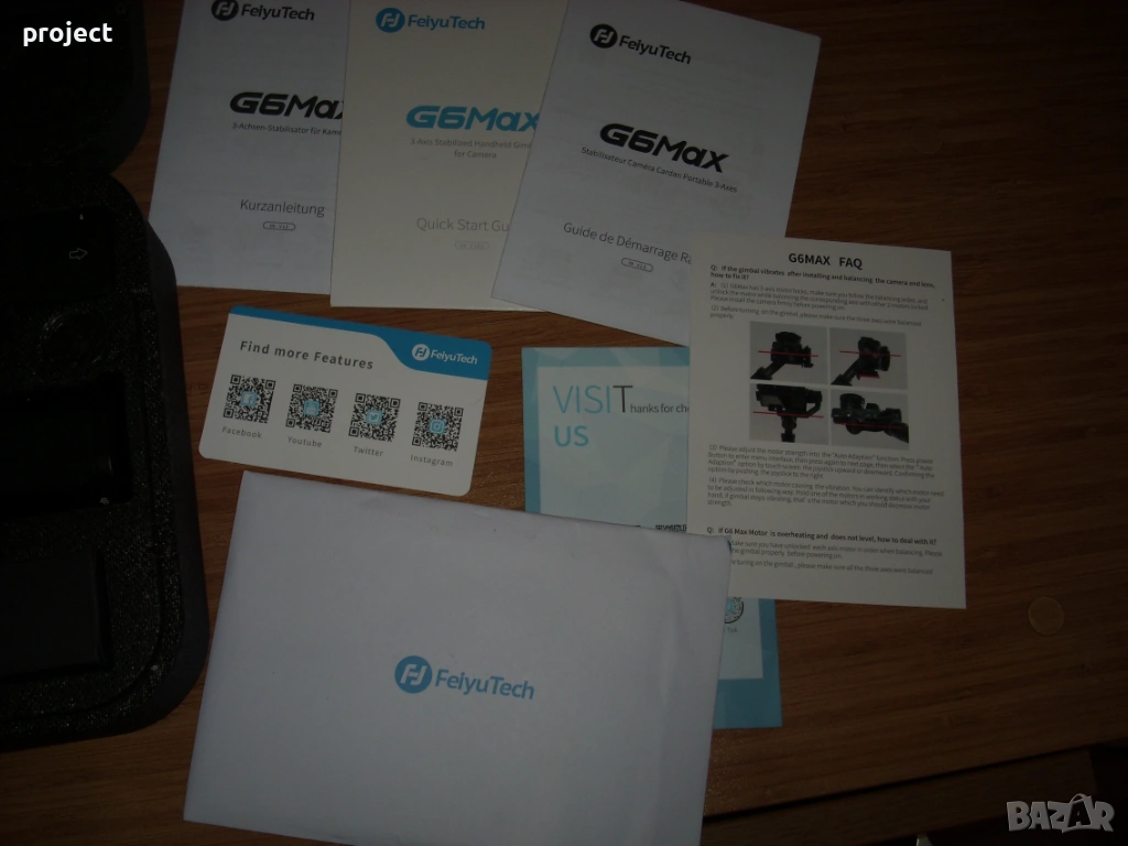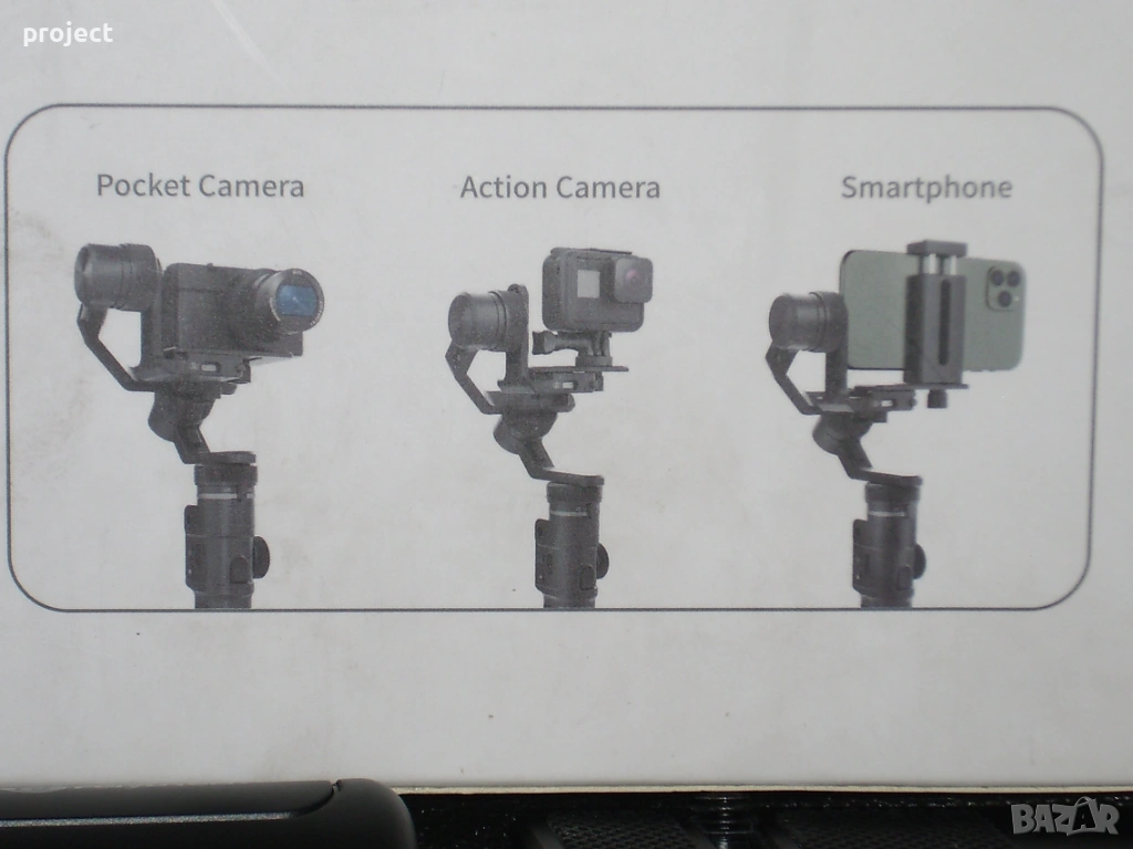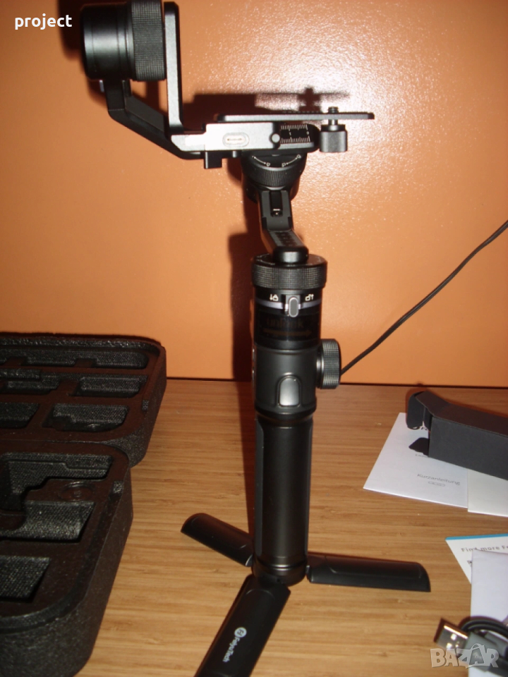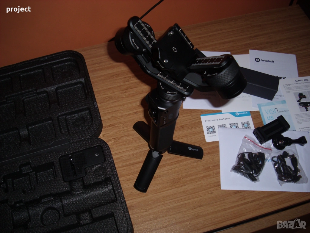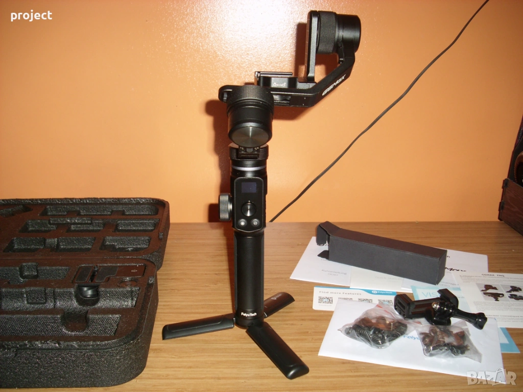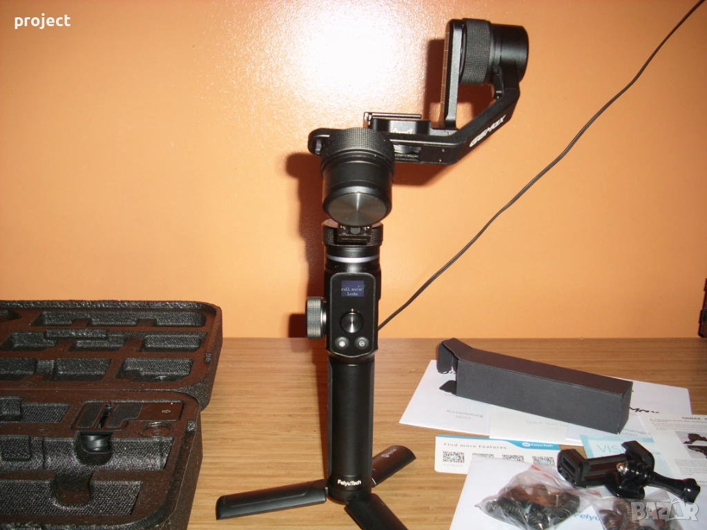 Много малко използван Гимбъл Feiyutech G6 max( стабилизираща система ).Гимбъл за малък фотоапарат,екшън камера или за телефон. Лесно се работи с него. Книжка с описание за работа ,различни букси ,кабел за зареждане,стойка ,калъф и кутия.Гимбъла е купуван от Германия