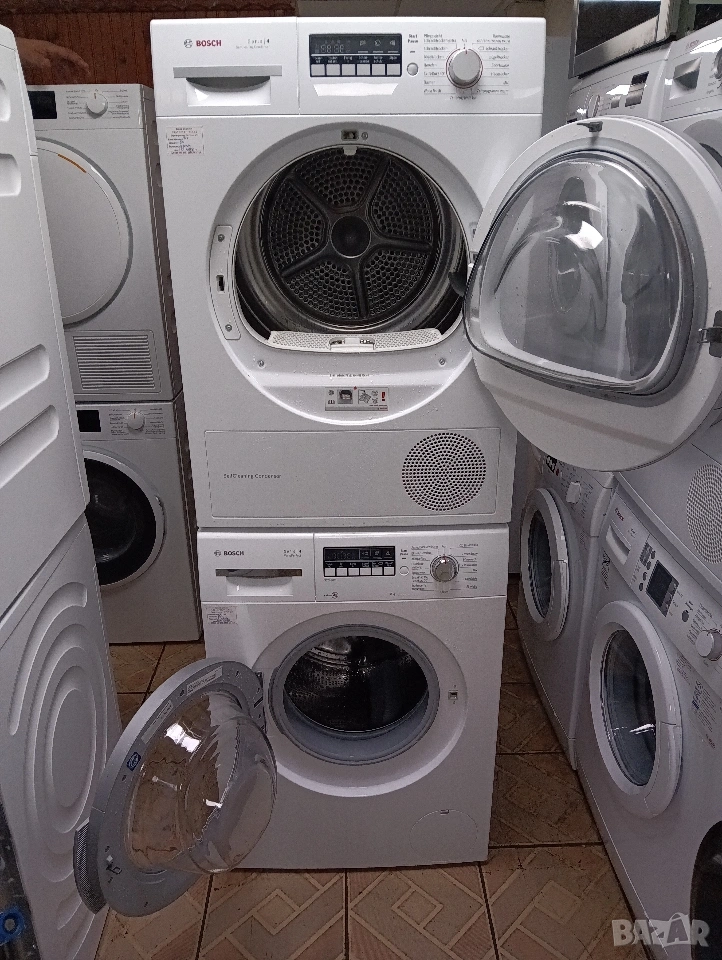 Комплект пералня и сушилня с термопомпа Бош Bosch Serie 6 A+++ 8кг 2 години гаранция!
