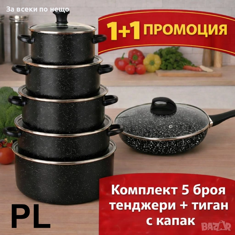 Черен комплект 5 емайлирани тенджери + тиган Rosberg 26 см с капак Код P1850