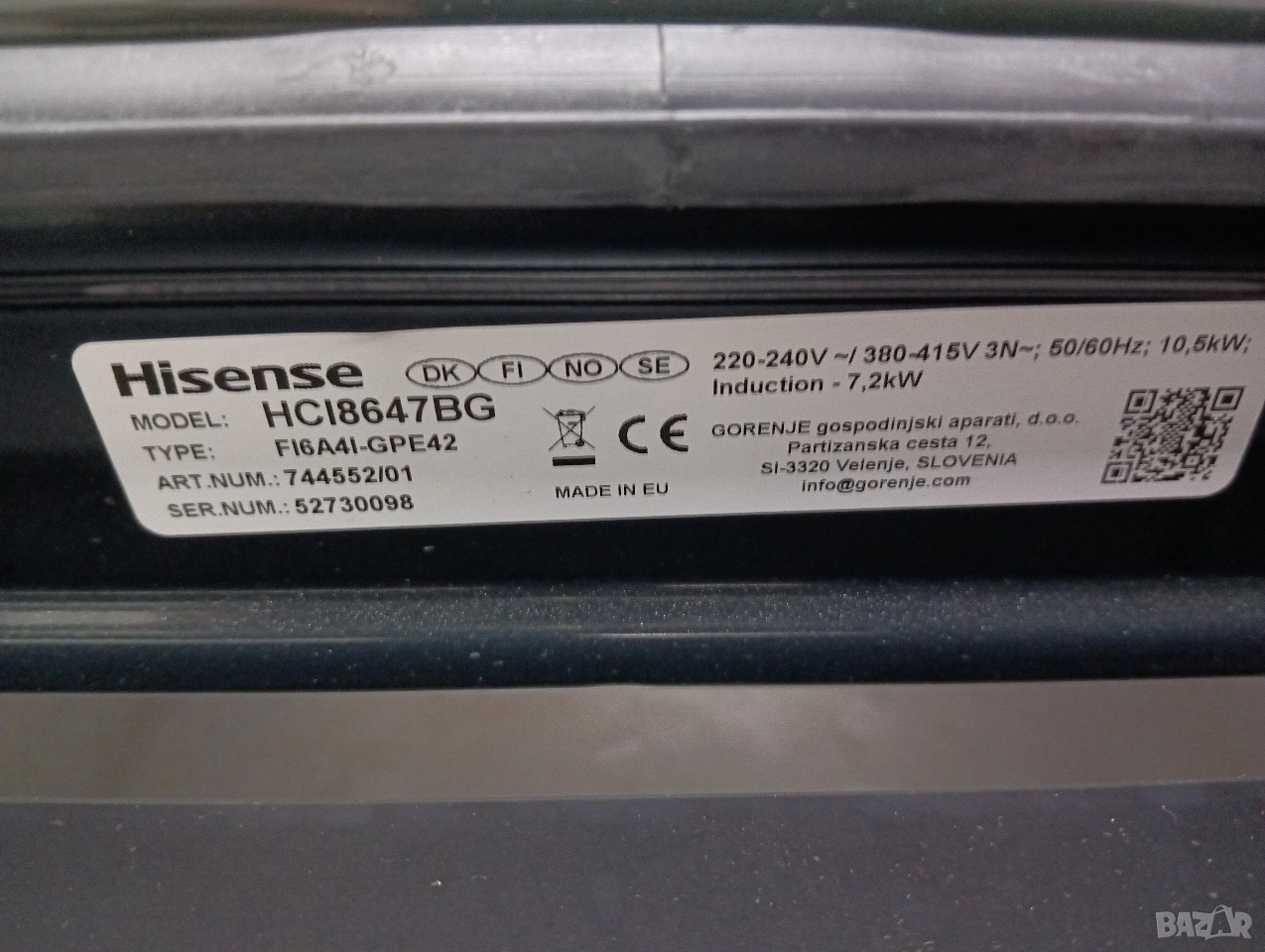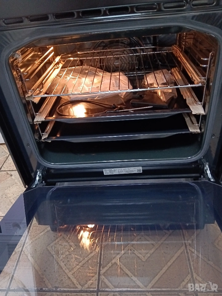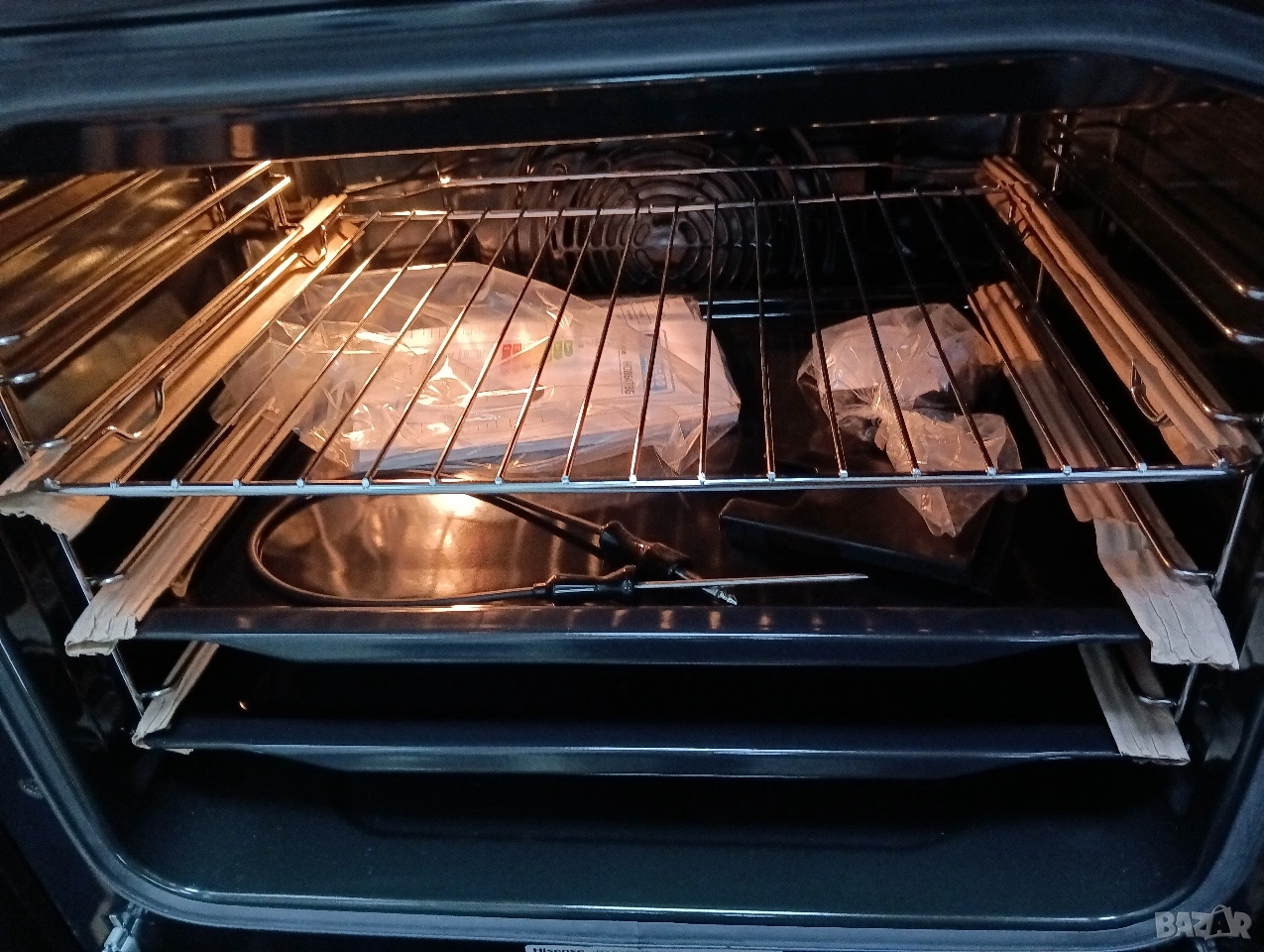 Чисто нова печка с индукционни котлони с гаранция.Чисто нова печка с индукционни котлони, тъчскрийн управление, часовник, пуш бутони, комплект оборудване решетка и две тави и др.