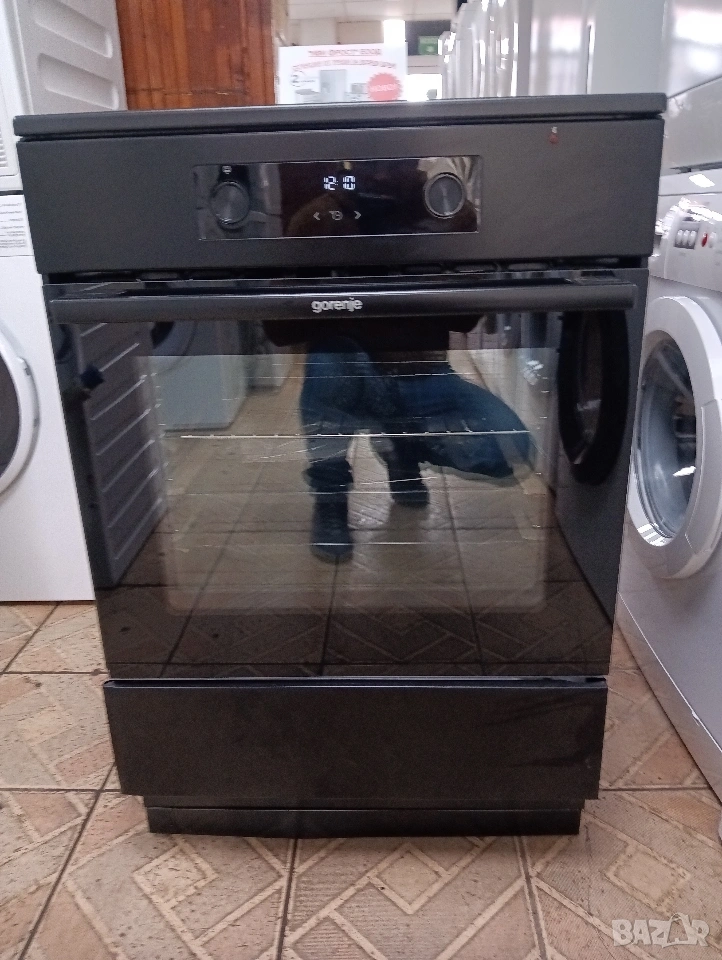 Чисто нова черна свободно стояща печка с индукционни котлони с две години гаранция!