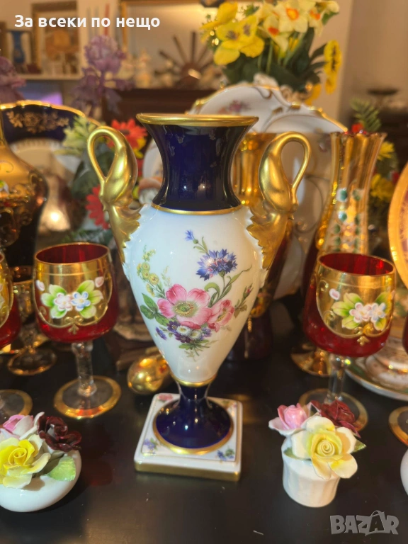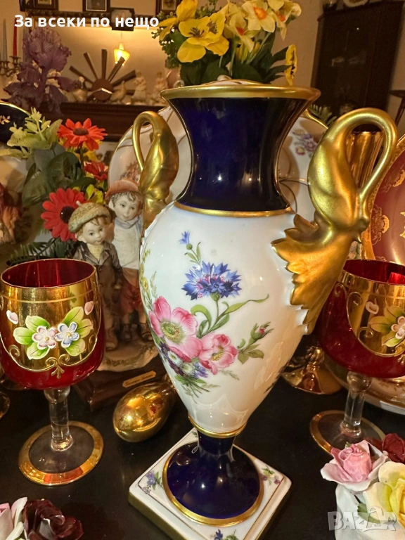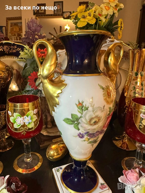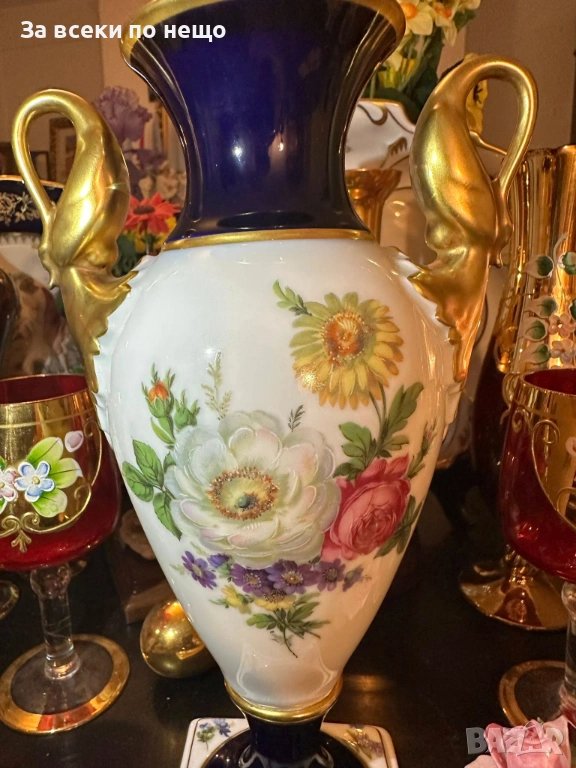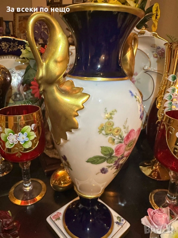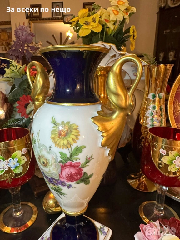 A. K. “Kaiser" Germany "Echt Scharffeuer Kobalt" “Изящната ваза” дръжки от злато Код P1853