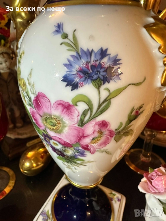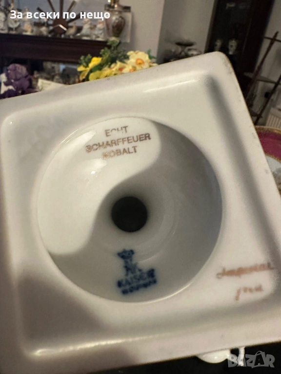 "Echt Scharffeuer Kobalt" translates to "Genuine Sharp-Fire Cobalt," a technique involving applying a cobalt mixture to fired, glazed porcelain. Отлично качество и състояние !