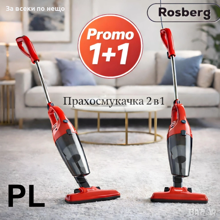 Промо Комплект 2бр. Прахосмукачка 2в1 Rosberg R51001A – 600W, Циклонна, Без Торба Код P1855