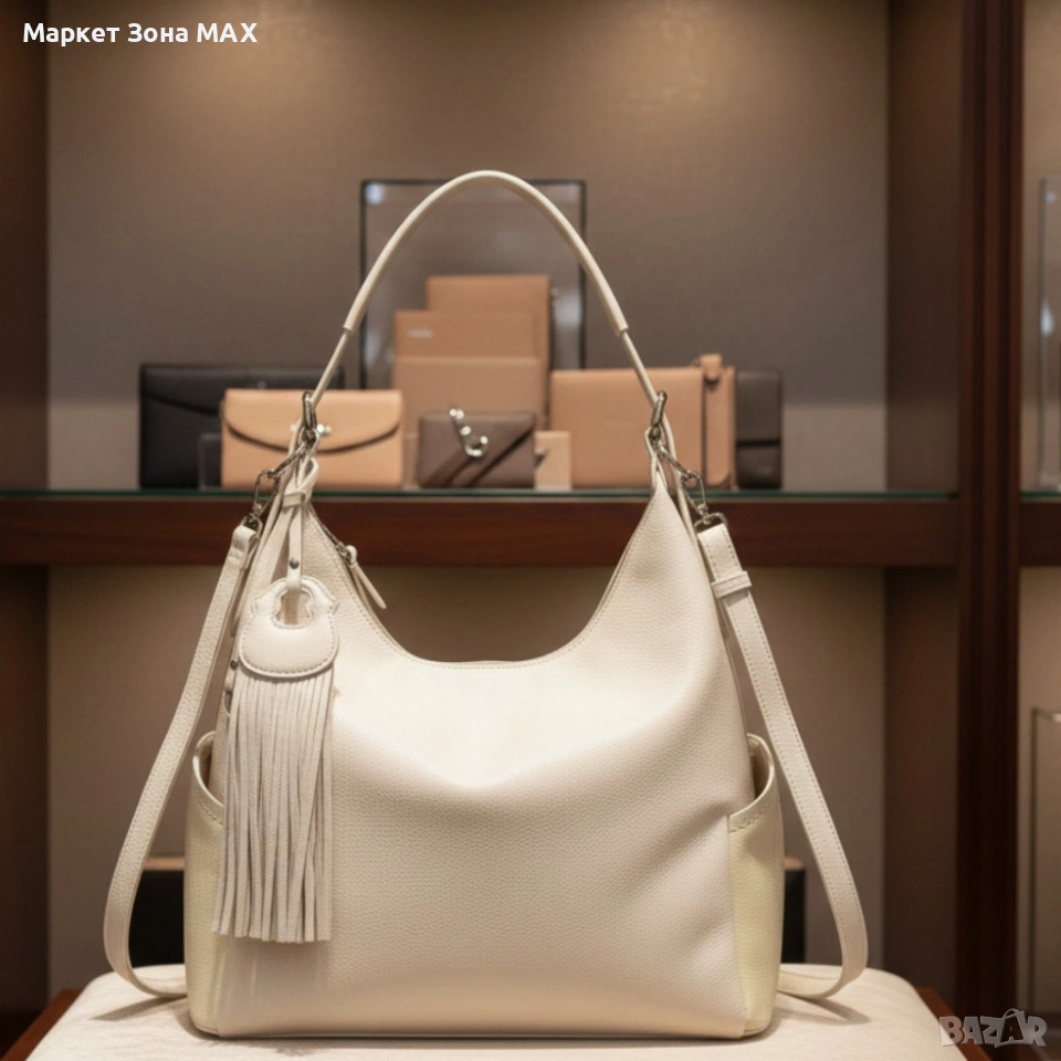 Дамска чанта с висулка и странични джобове в 7 цвята — стилна, вместителна и практична