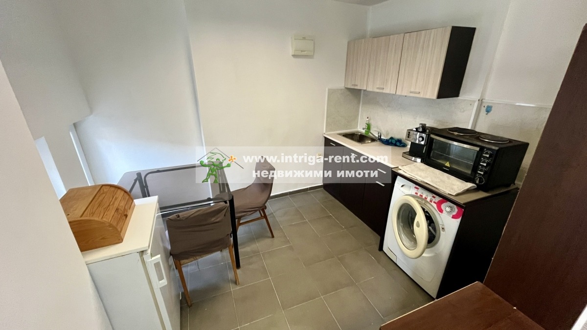 пералня, малък хладилник, фурна, кафе машина, маса за хранене с 2 броя столове