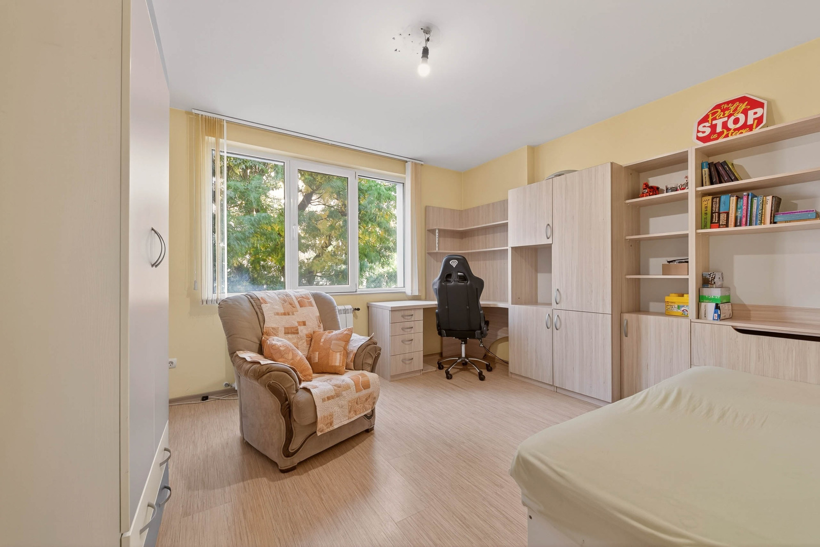 Жилището се отдава ремонтирано, обзаведено и оборудвано с ел. уреди - вградена фурна на Bosch с керамични котлони и аспиратор на AEG, съдомиялна машина на Bosch, хладилник, пералня, сушилня, телевизори. Има климатици във всички стаи. Подовите покрития са ламинат и гранитогрес. Поставени са вертикални щори и ПВЦ дограма. Има домофонна система.