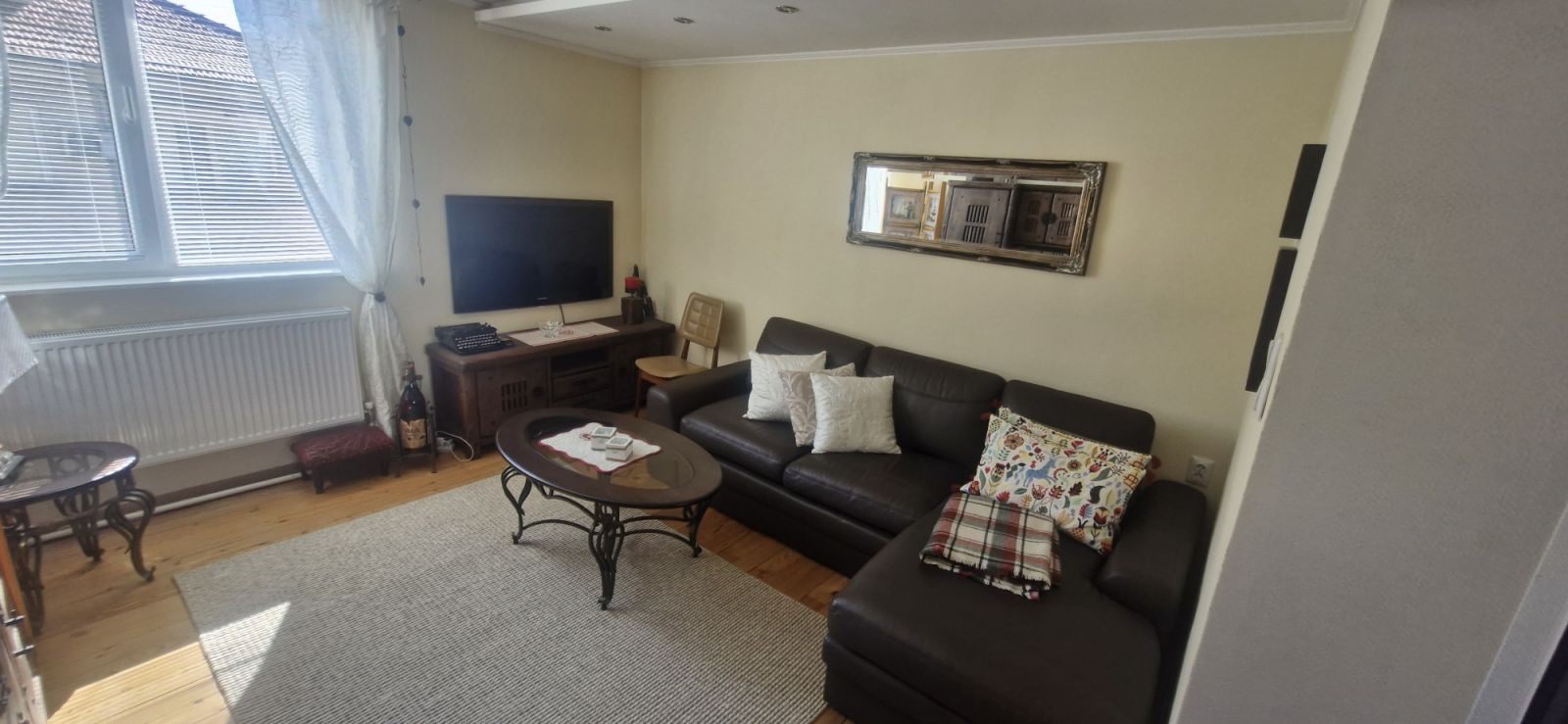 Представлява втори етаж от масивна двуетажна къща, със самостоятелен вход и функционалност на просторен тристаен апартамент.Жилището е светло, топло и отлично поддържано, създаващо усещане за уют и комфорт.