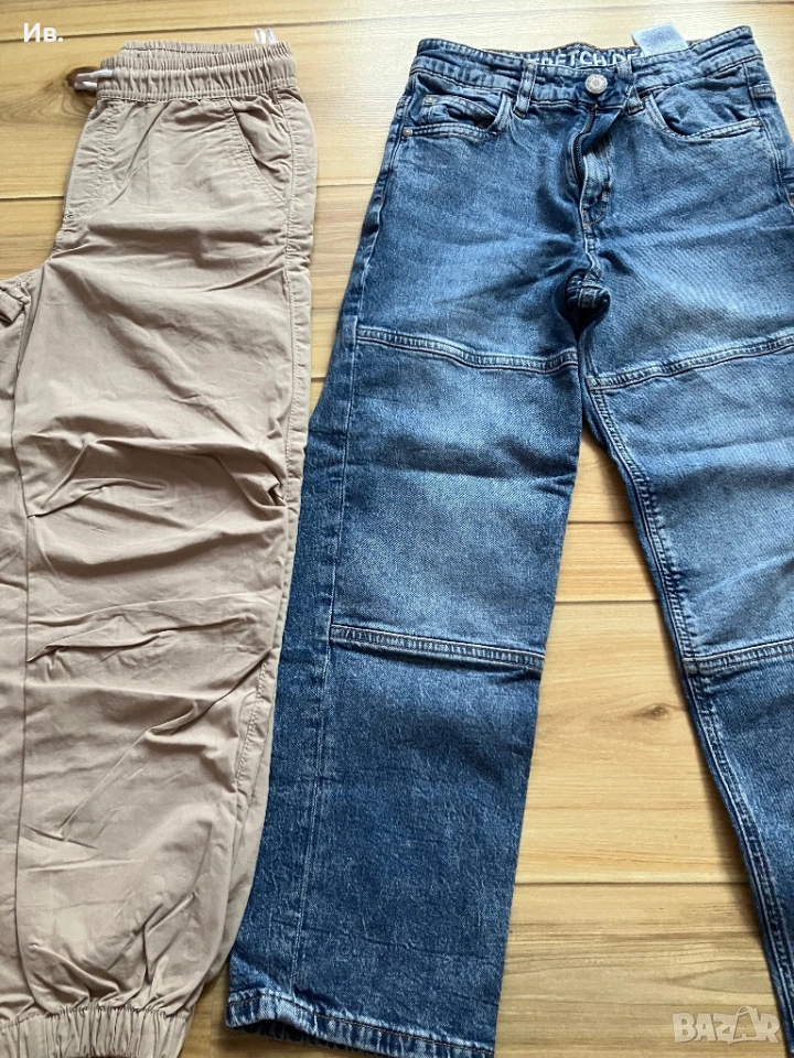 Якето е с подплата. Единствените забележки са по задната част на ръкавите и отзад пак в долната част - има ги на снимките. Дънките и панталона са като нови.