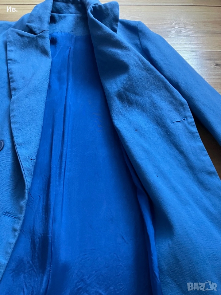 Палтото е свободен модел, по-светъл цвят е, отколкото изглежда на снимката. Леко изветлял от носене и пране е , но реално няма забележки