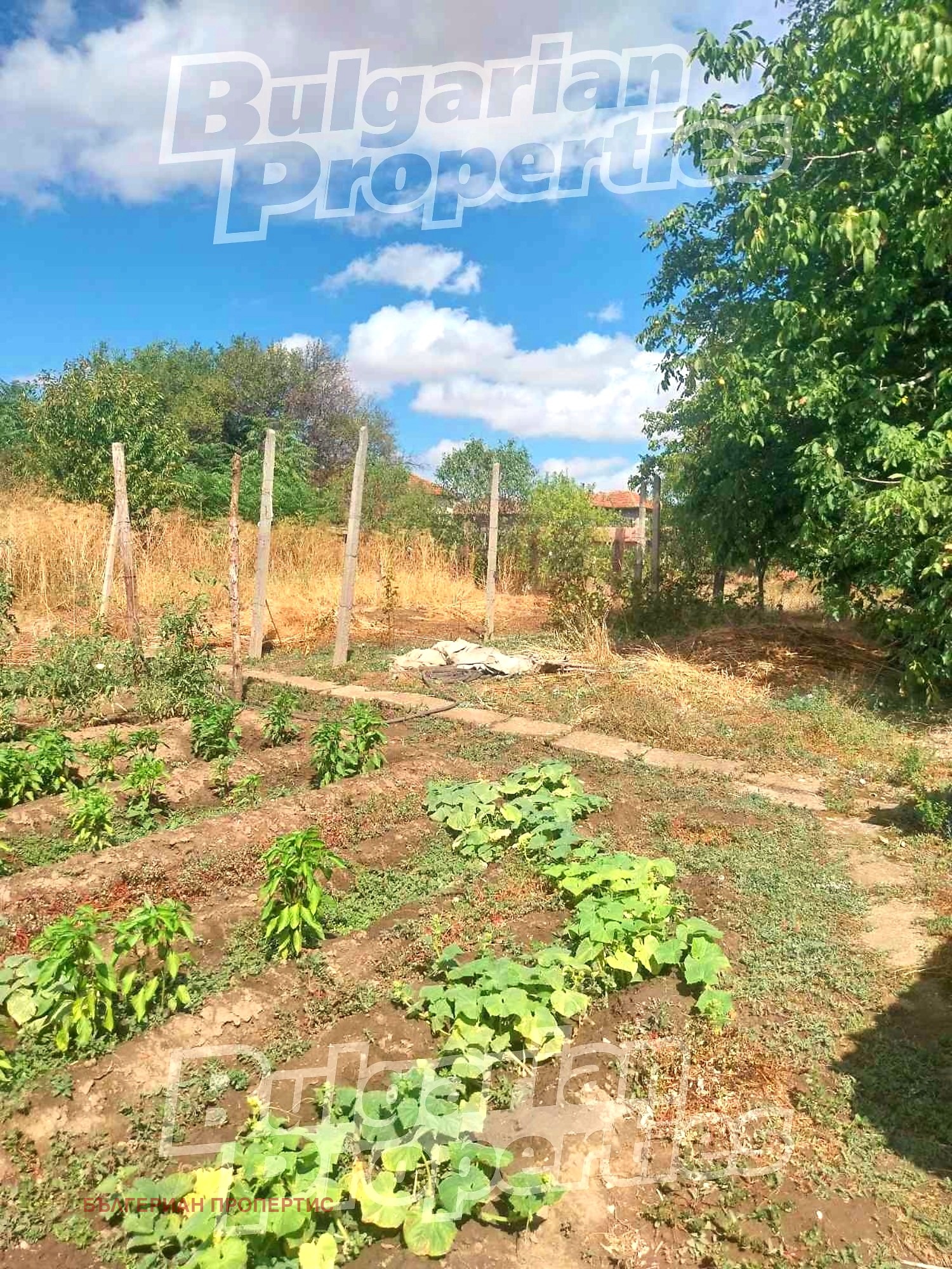 Задната част на имота представлява обработваема площ ( нива ) с приблизителна площ от 700 кв.м, подходяща за зеленчукова градина или овощни насаждения. В двора има кладенец, както и няколко дървета, сред които голям орех, осигуряващ естествена сянка през летните месеци.