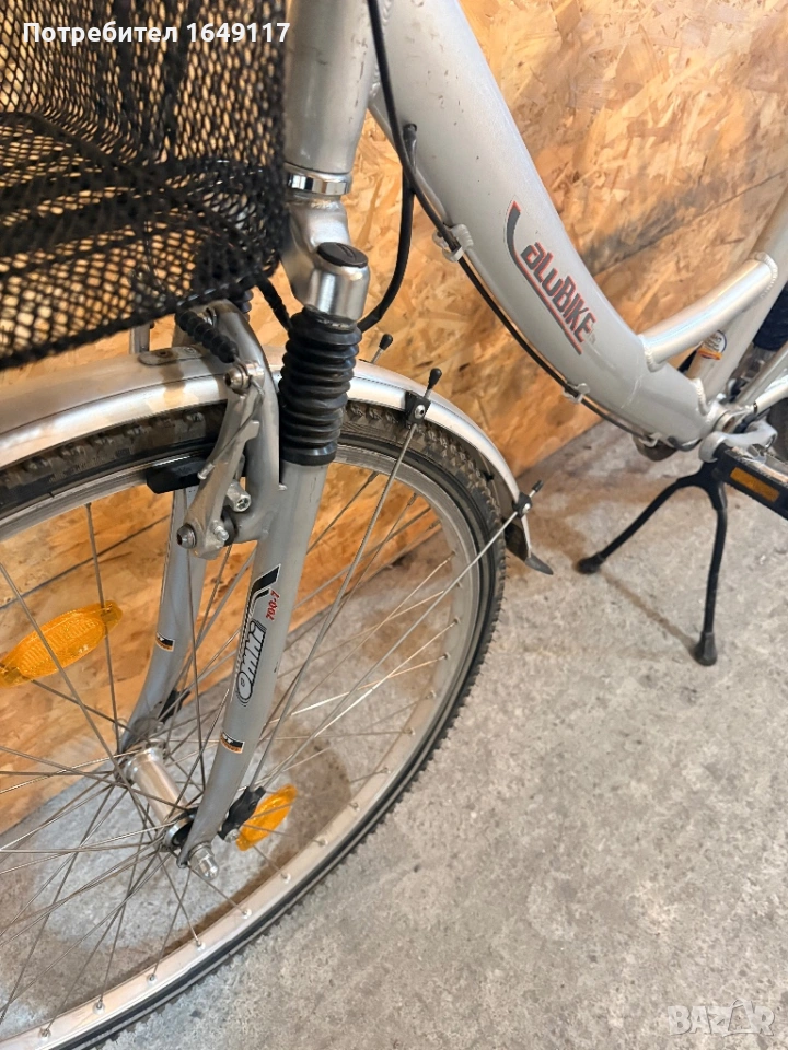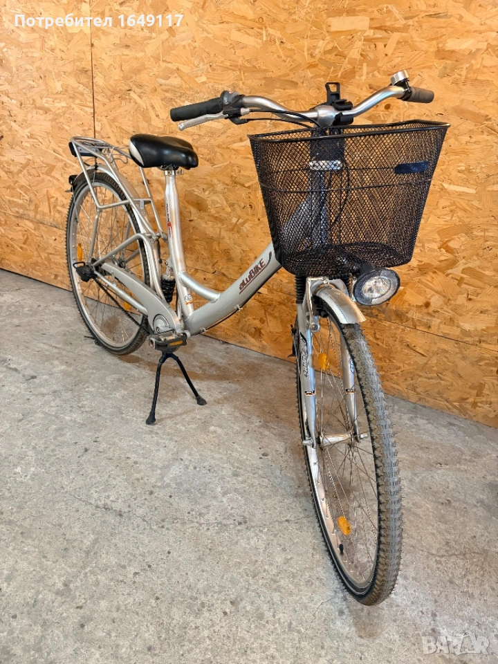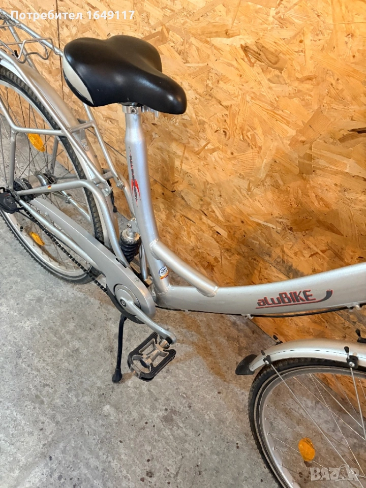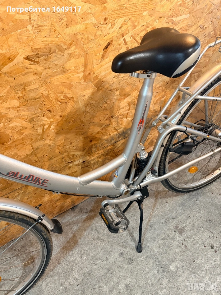 градски велосипед TCM aluBIKE[made in Germany]. Олекотена, алуминиева рамка - 48см, с ниско прекрачване. Вътрешни скорости Sachs Spectro S7 - 7бр. c revo shift командa Sachs. Предна амортисьорна вилка RST Omni 700-7. Централен амортисьор с регулиране на твърдостта. Алуминиеви курбели с алуминиеви педали. Широка, гелова седалка. Алуминиеви капли, и нови гуми с усилен профил. Предна алуминиеви V-break спирачка ProMax + контра отзад. Широко градско кормило. Заден багажник с натоварване до 18кг + кошница за багаж отпред. Олекотени, пластмасови калници. Алуминиева, двойна-мото стойка. Халогенен фар и габаритна светлина, светлоотразители, звънец. Кошничка за бутилка.