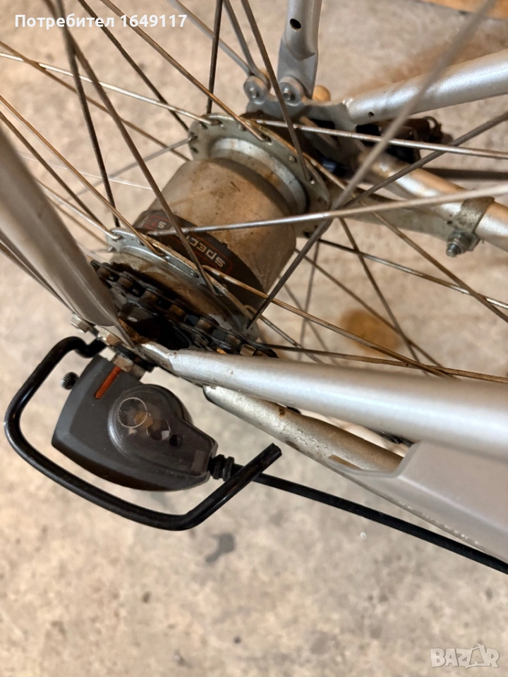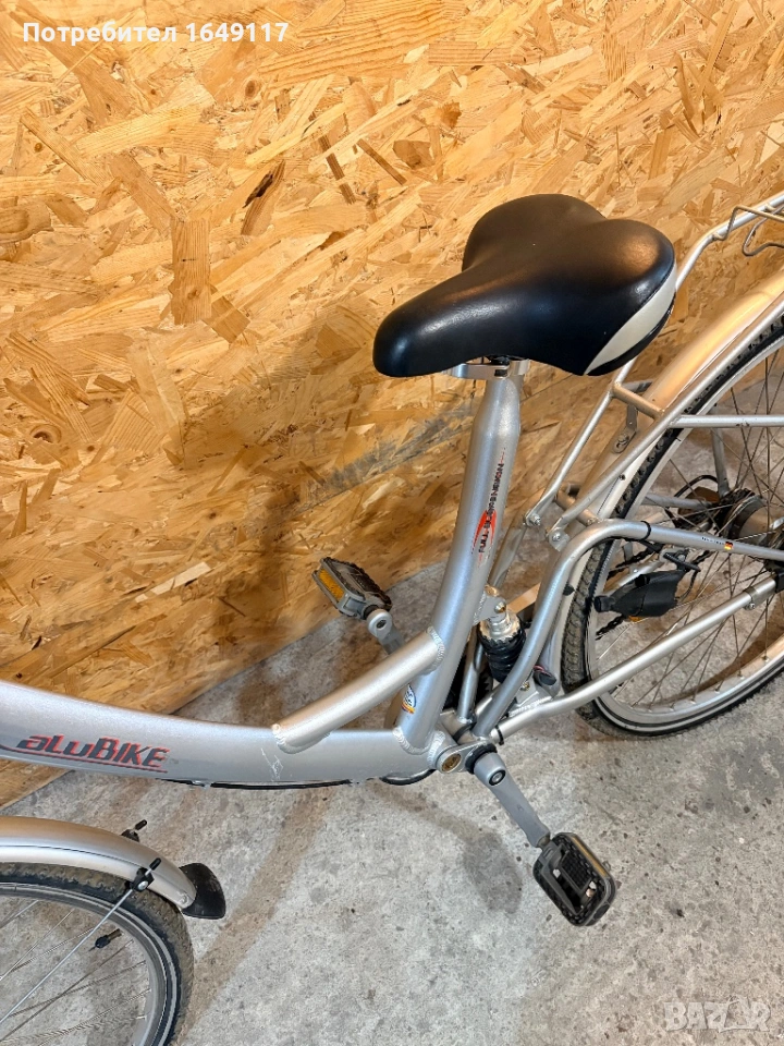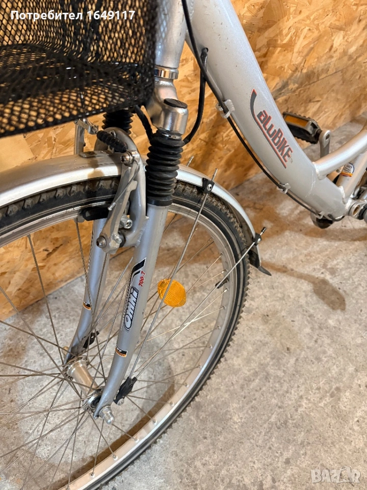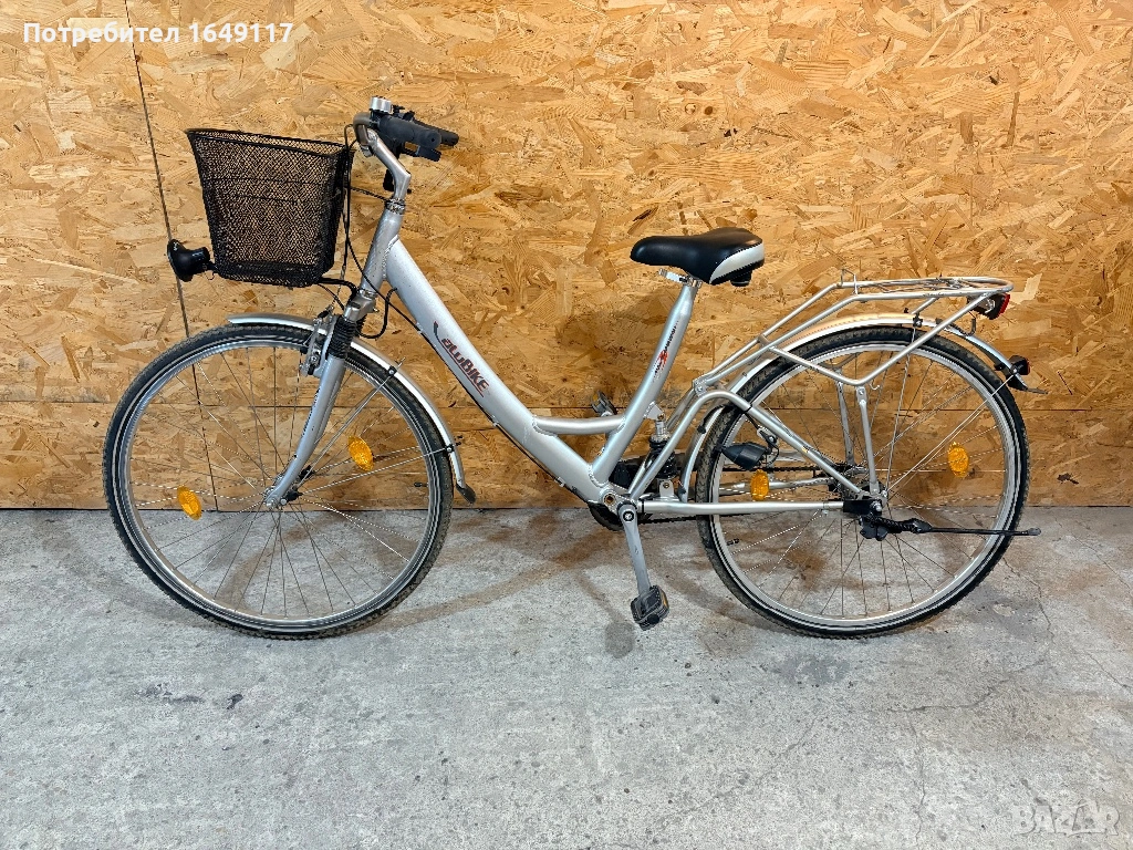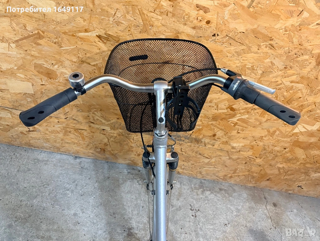 Продавам 28цола, съвсем малко употребяван, дамски-градски велосипед TCM aluBIKE[made in Germany]. Олекотена, алуминиева рамка - 48см, с ниско прекрачване. Вътрешни скорости Sachs Spectro S7 - 7бр. c revo shift командa Sachs. Предна амортисьорна вилка RST Omni 700-7. Централен амортисьор с регулиране на твърдостта. Алуминиеви курбели. Широка, гелова седалка. Алуминиеви капли, и нови гуми с усилен профил. Предна алуминиеви V-break спирачка ProMax + контра отзад. Широко градско кормило. Заден багажник с натоварване до 18кг + кошница за багаж отпред. Олекотени, пластмасови калници, стойка, халогенен фар и габаритна светлина, светлоотразители, звънец. Кошничка за бутилка.