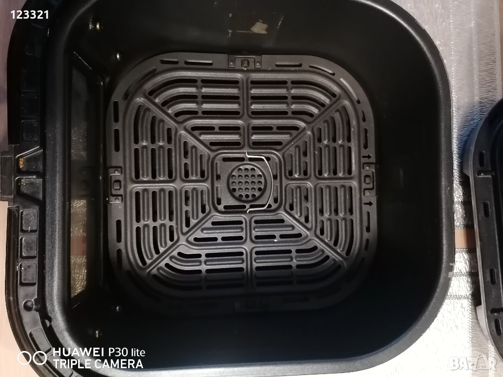 Капацитетът на кошницата от 5.7 литра позволява да приготвите 1.8 кг. пиле или 1 кг. картофи наведнъж. Независимо дали използвате прясна или замразена храна, можете да се насладите на удобството и здравословният резултат, които Ви предлага уредът. Правоъгълната форма на кошницата осигурява приготвянето на повече храна, спрямо кръгли кошници с подобен обем. В допълнение, към уреда пристига и удобна приставка, чрез която се осъществява свободна циркулация на горещия въздух, без сложно и ангажиращо почистване след това.