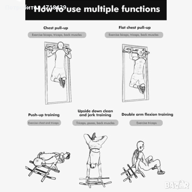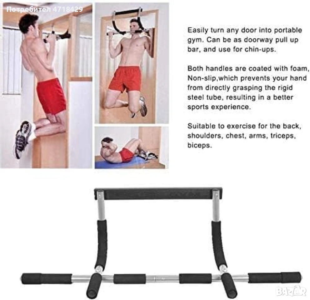 door trainer Регулируема щанга за набирания, тренажор за набирания до 200 килограма !!! → Обява 53280284