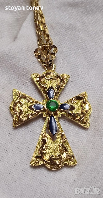 Това не е просто бижу – това е семейна ценност и наследство, съчетаващо високо златарско майсторство, рядък сертифициран цаворит и дълбок духовен символизъм. Перфектен за колекционери на фина религиозна бижутерия, любители на винтидж православни кръстове или всеки, който търси уникален и смислен предмет.