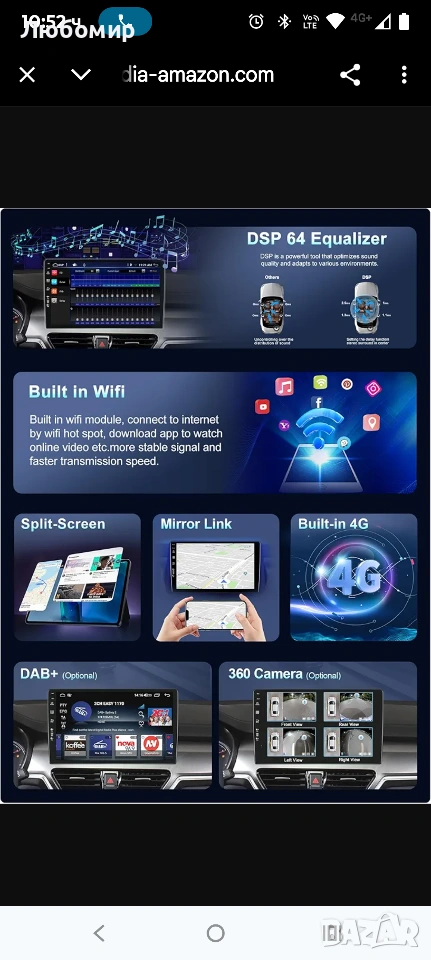 【Безжично Carply и Android Auto】свържете телефона си към Android автомобилното радио чрез BT. Можете да получавате упътвания, да осъществявате повиквания, да пускате съобщения и да се наслаждавате на музика и др. 【Вграден DSP】DSP е мощен инструмент, който оптимизира качеството на звука и се адаптира към различни среди. Той фино настройва аудио параметри като еквалайзер, филтриране на басите и сгъване на звука.