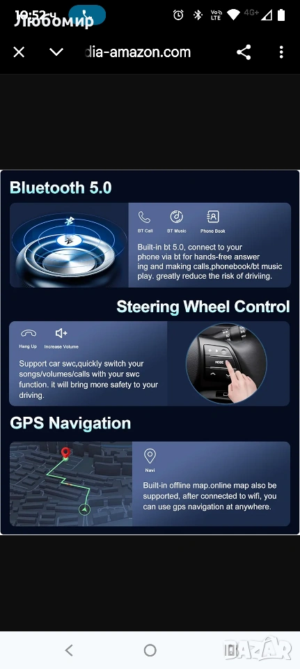 【Управление от волана】Позволява ви лесно да контролирате превключването на песни, разговорите със свободни ръце, силата на звука, по-безопасно и удобно, когато шофирате. 【Bluetooth 5.0】Поддържа BT 5.0 с A2DP/разговори със свободни ръце, BT музика, изтегляне на телефонен указател, записи на разговори