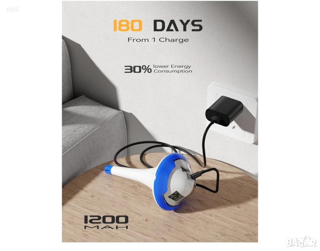 ⚡【Устойчива употреба】Този плаващ термометър за басейн е не само енергоспестяващ, но и оборудван с висококапацитетна акумулаторна литиева батерия от 1200mAh. Може да се зарежда чрез USB-C, а интелигентният дизайн на горния сензор за светлина му осигурява невероятната издръжливост „зареди веднъж, използвай 180 дни“, така че вече не е нужно да се притеснявате за честа смяна на сухи батерии и наистина ще осъзнаете устойчивото използване на енергия.
