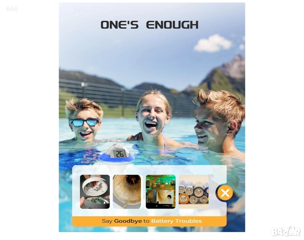 Термометър за басейн BALDR, акумулаторен, 180 дни с 1 зареждане