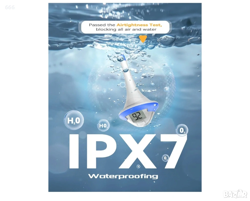 【Иновативна водоустойчива система IPX7】Нашата система за измерване на температурата на водата използва усъвършенствана двуслойна изолация и водоустойчива изолационна система, която е като солидна защитна бариера и е преминала през строги научни експерименти, за да осигури перфектна защита при всякакъв вид вода. Тази система е безмилостна както към водните пари, така и към въздуха, като строг пазач на поста си, предпазвайки от всякакви чужди вещества. Дори молекулите на въздуха, които са по-леки от водата, не могат да преминат през този защитен слой, гарантирайки, че оборудването ви е винаги свежо и без външни течности.