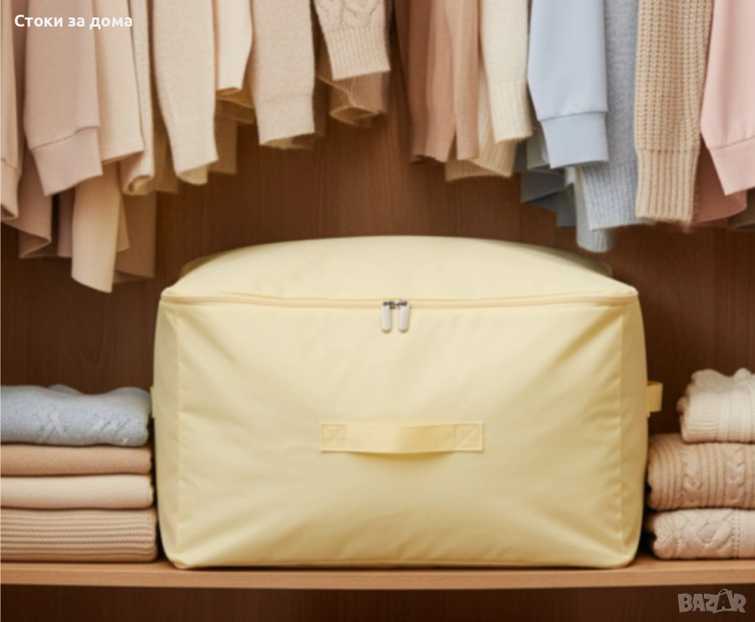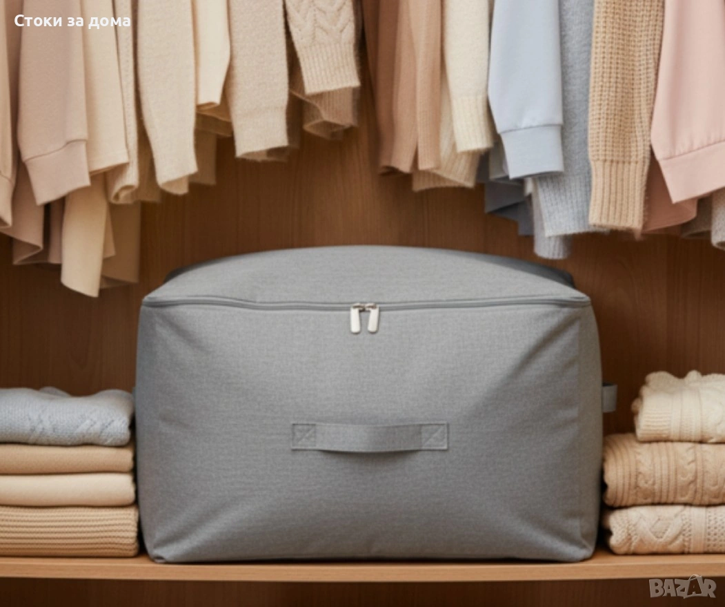 За съхранение на одеяла, завивки и други обемисти текстили.