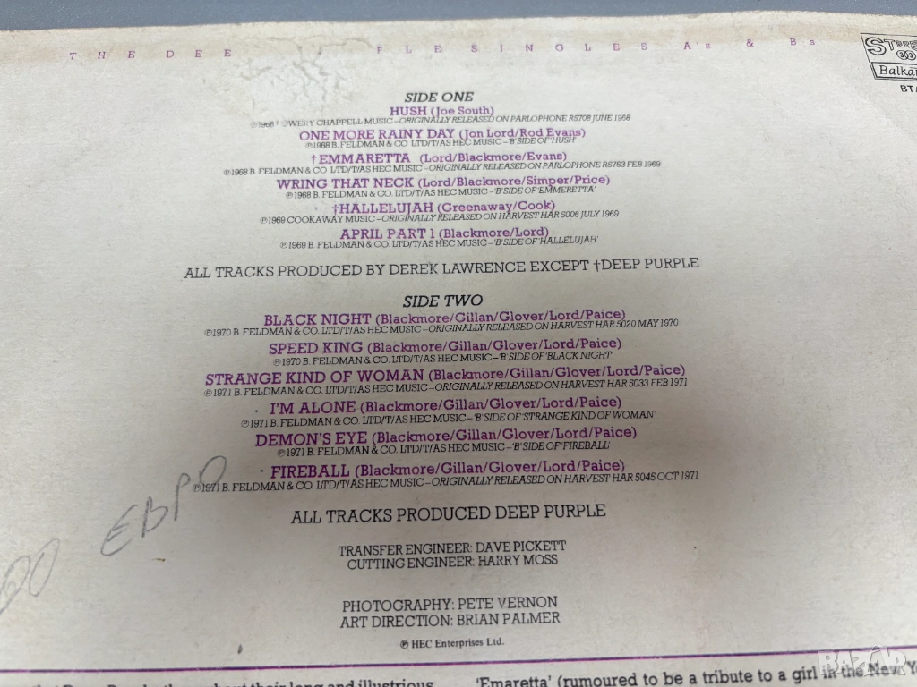 Грамофонна Плоча Deep Purple ‎– The Deep Purple Singles A's & B's → Обява 53280747